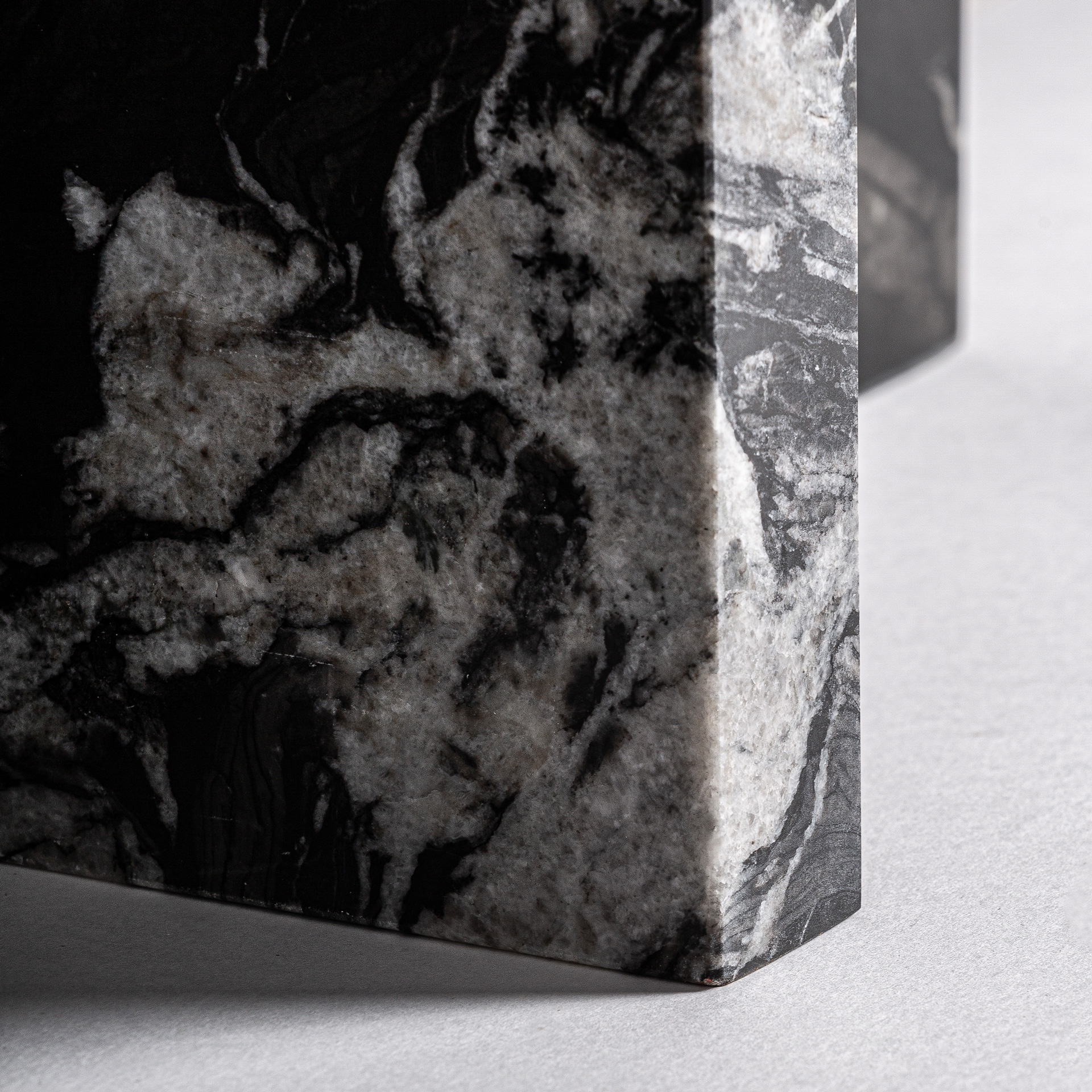 Consola Khat de estilo contemporáneo fabricado en mármol en color negro con acabado veteado. Producto desmontable.
