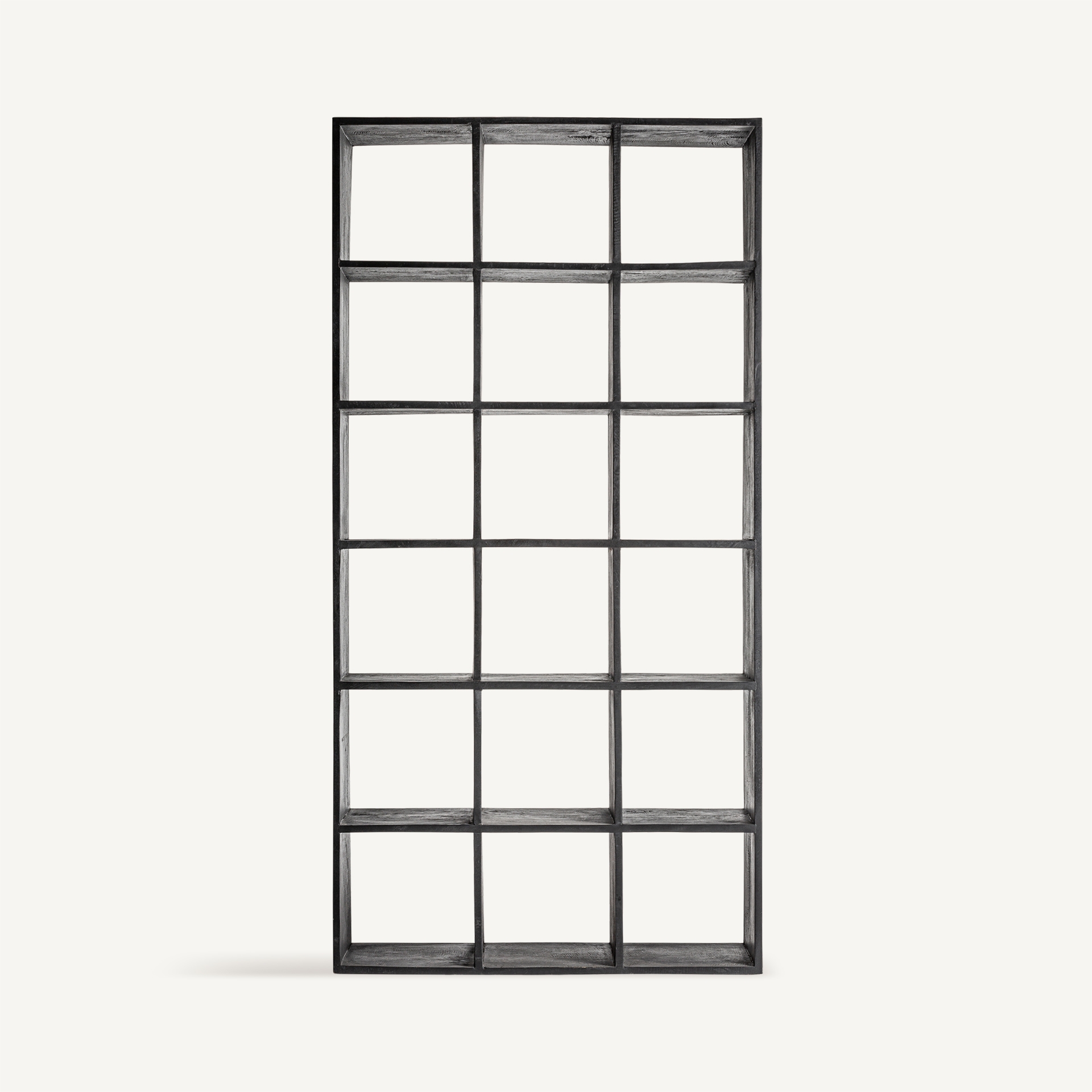 Estanteria stendal de estilo colonial fabricado en madera de olmo reciclado en color blanco con acabado decapado.