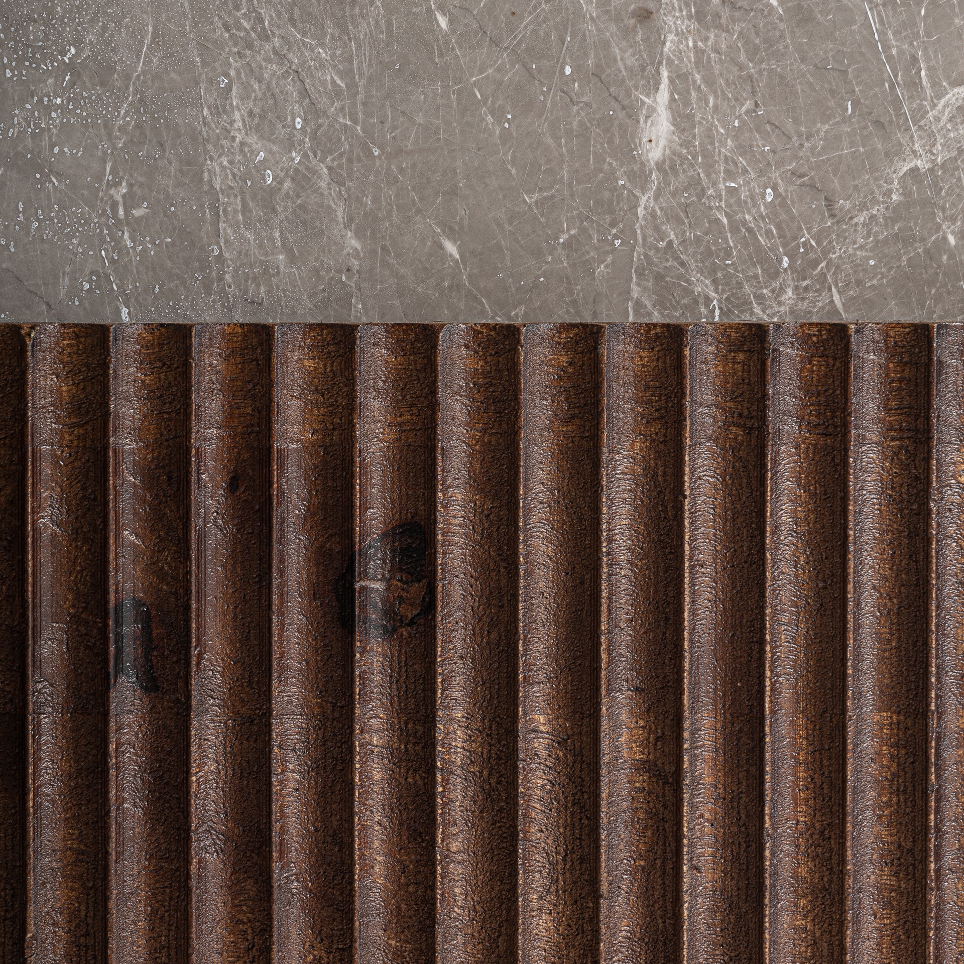 Mesa auxiliar Anzex de estilo contemporáneo fabricado en madera de mango en color marrón combinado con mármol en color gris con acabado veteado.