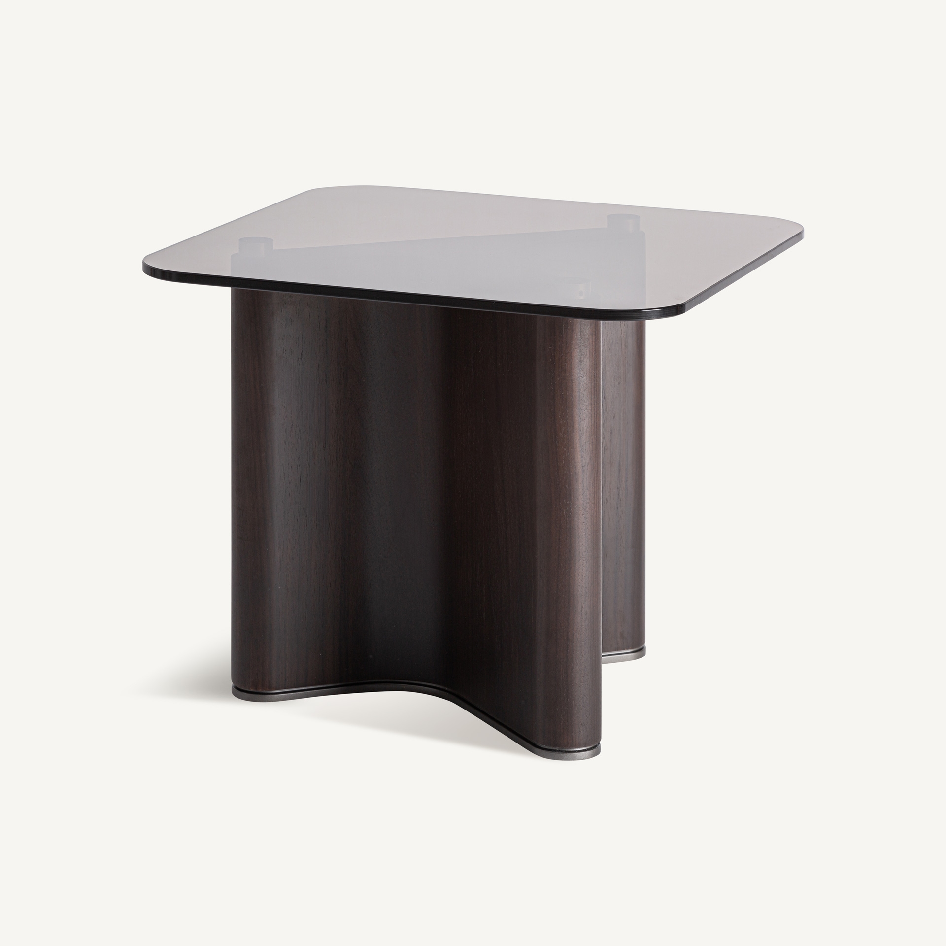 Mesa auxiliar Bransby de estilo contemporáneo fabricado en madera de fresno en color negro combinado con cristal en color gris con acabado templado. Producto desmontable.