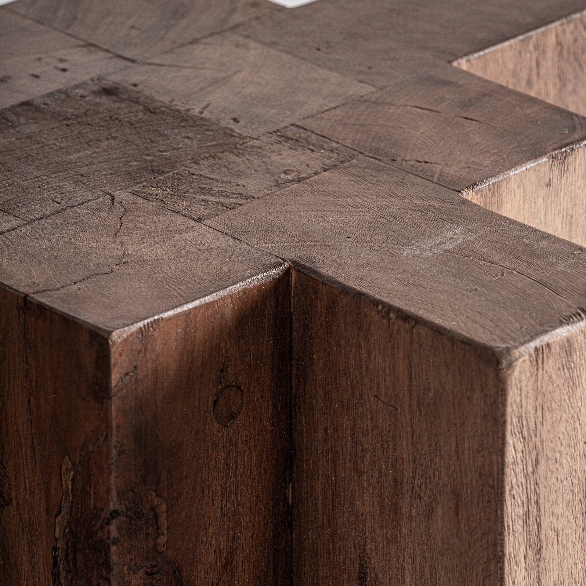 Mesa auxiliar Brutalist de estilo contemporáneo fabricado en madera de sal en color marrón con acabado teñido.