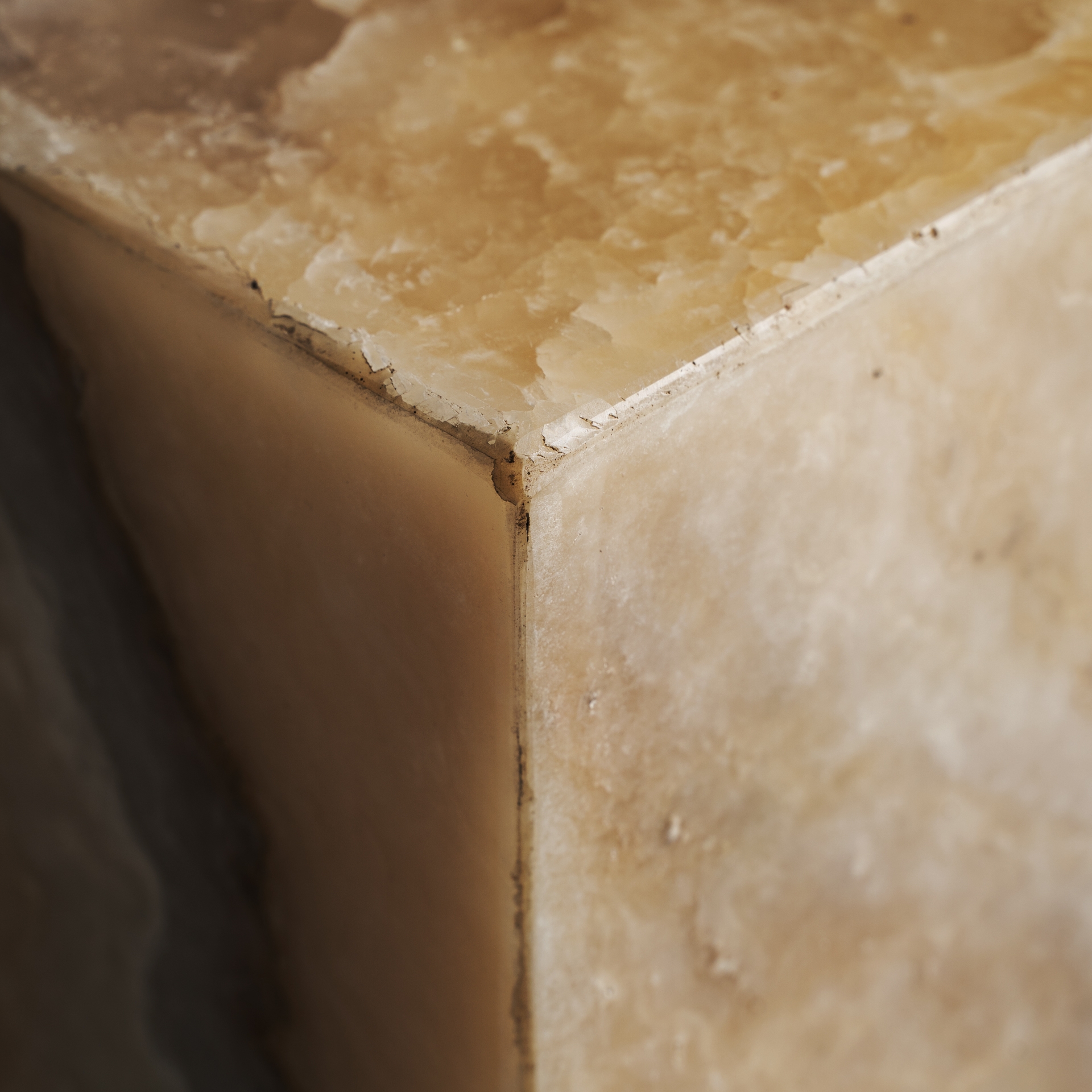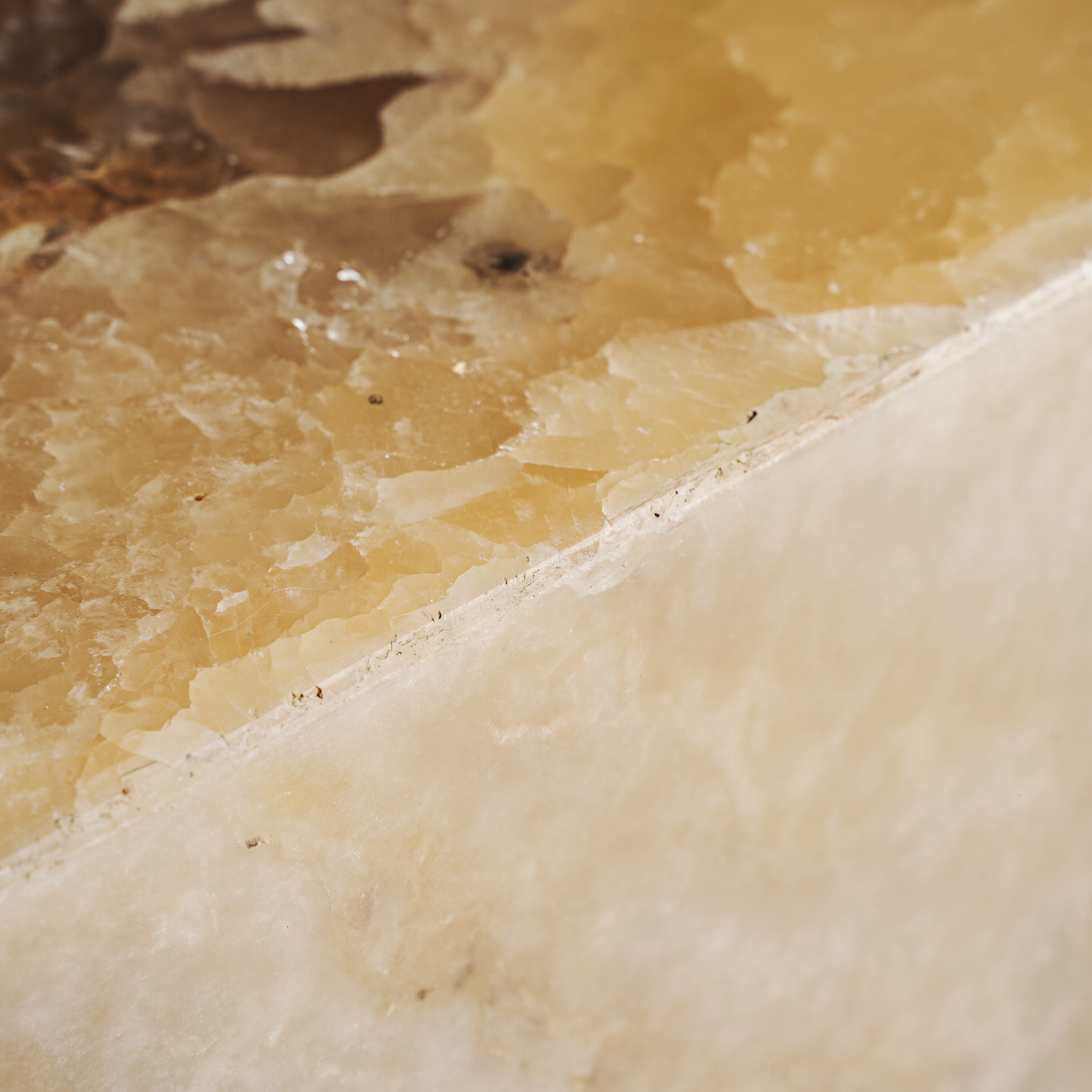 Mesa auxiliar Magland de estilo nórdico fabricado en onix en color marfil.