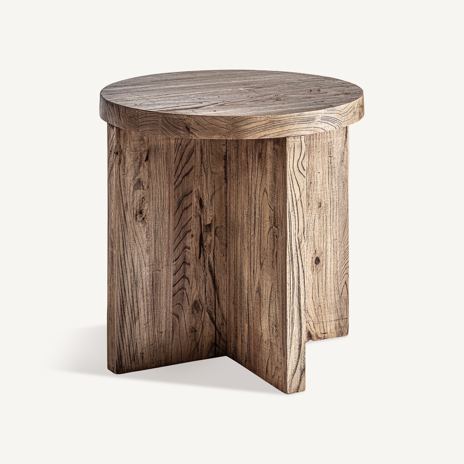 Mesa auxiliar Norvik de estilo contemporáneo fabricado en madera de olmo en color marrón.