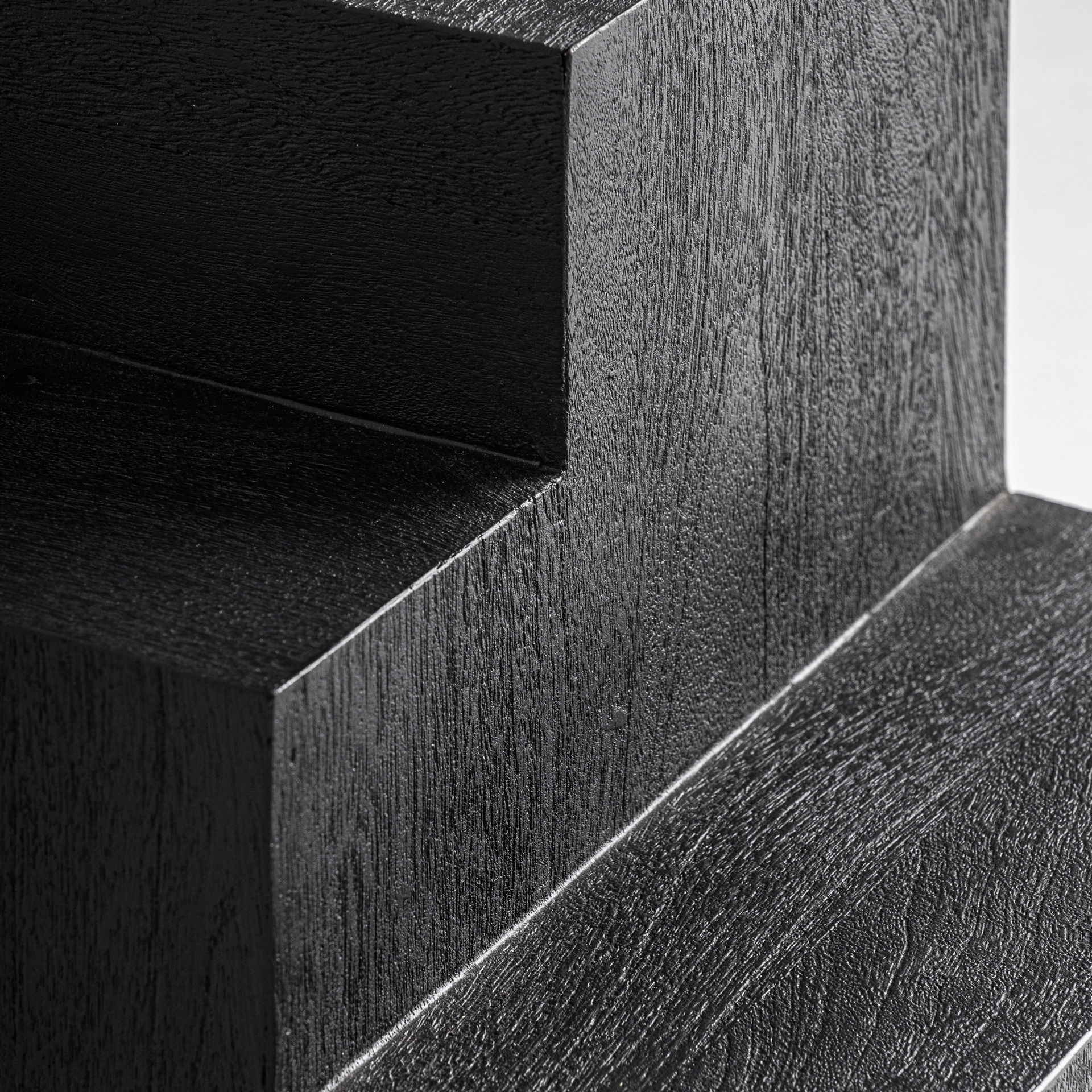 Mesa auxiliar Pètria de estilo contemporáneo fabricado en madera de mango en color negro con acabado arenado.