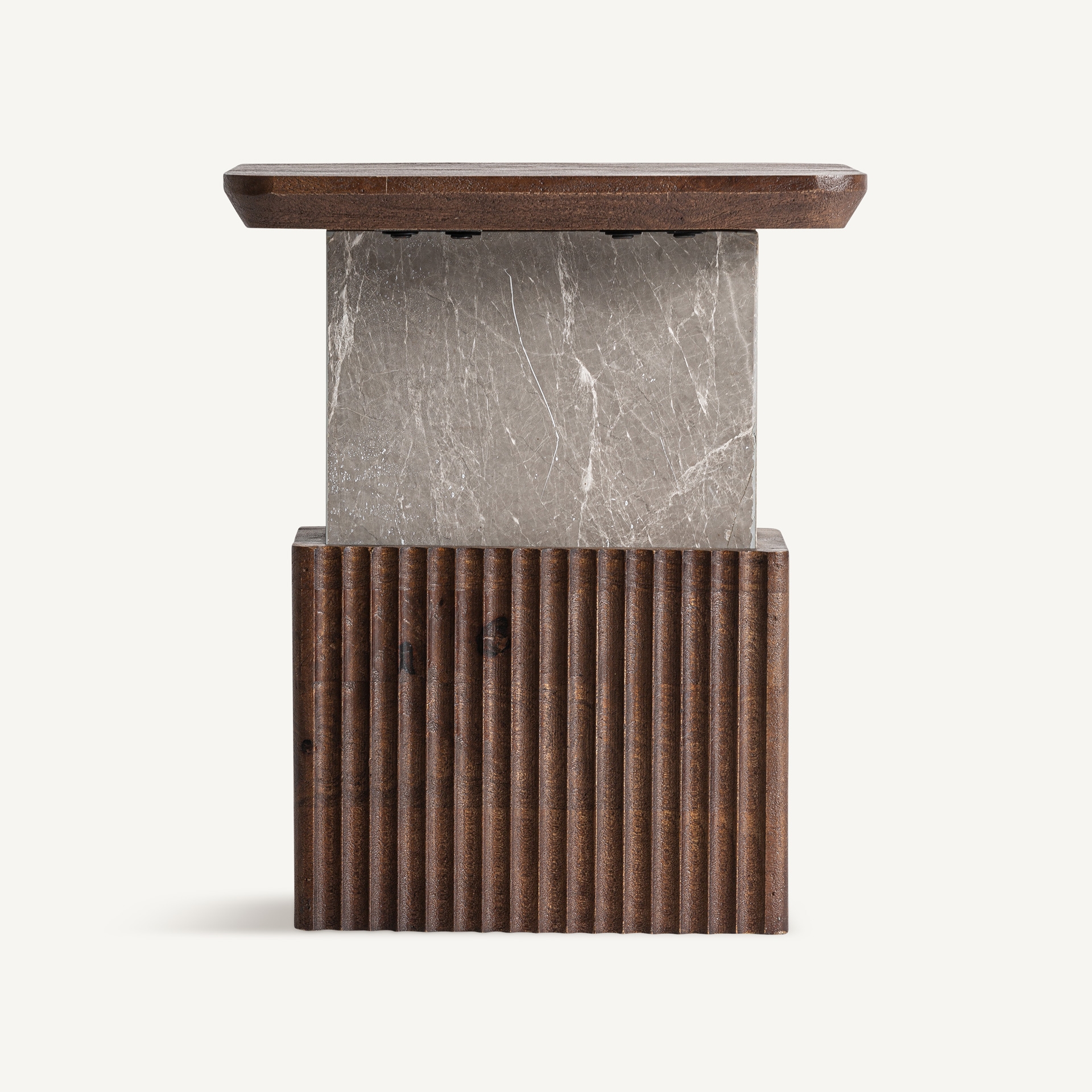 Mesa auxiliar Scothern de estilo contemporáneo fabricado en mármol en color blanco.