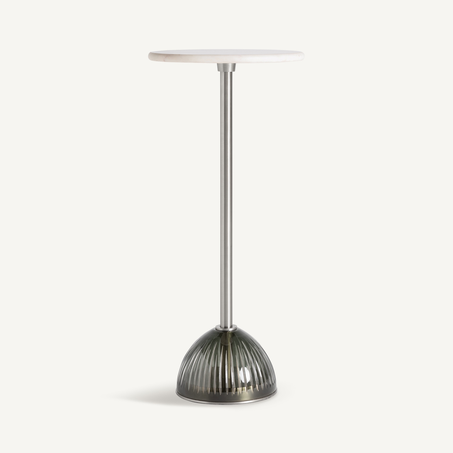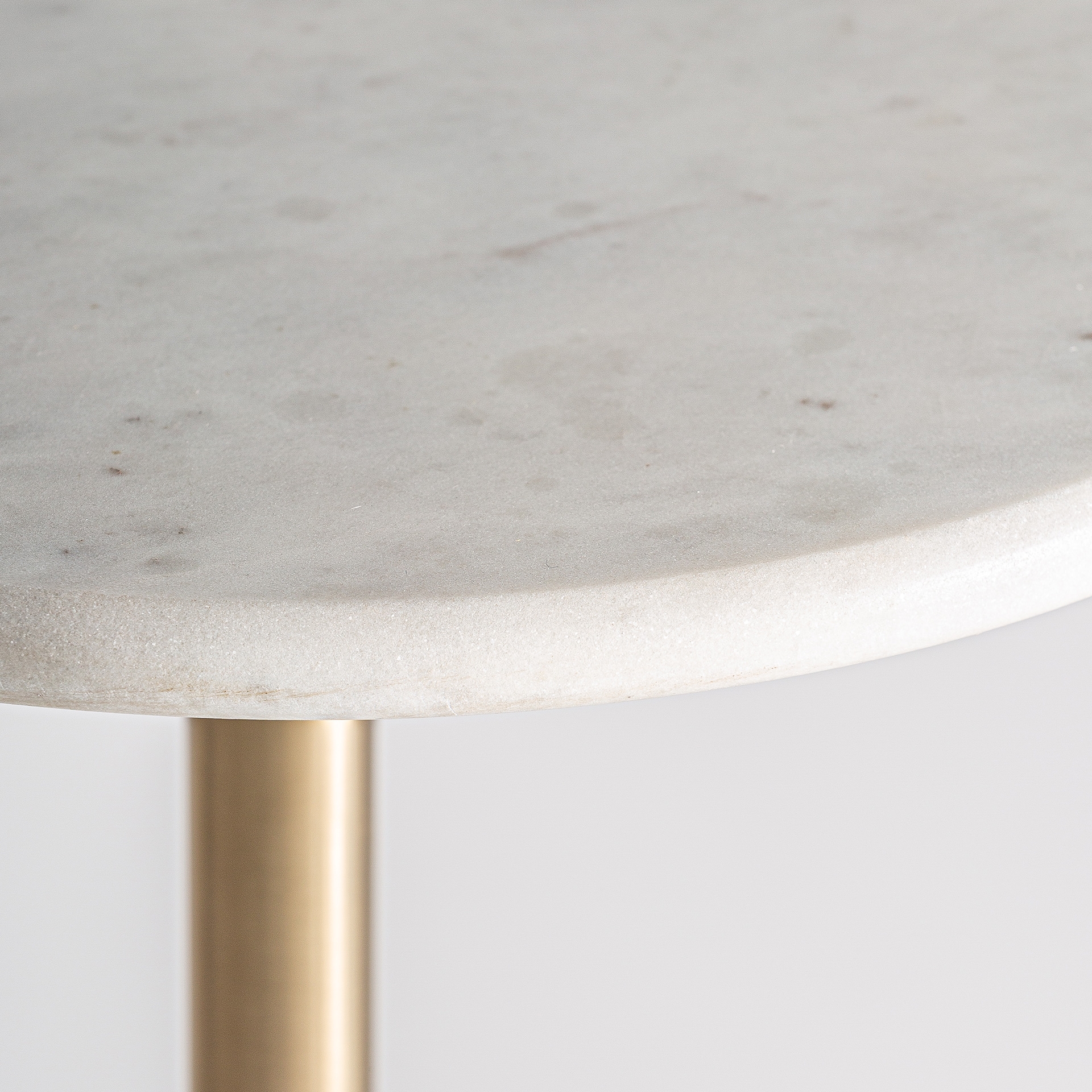 Mesa auxiliar Sintra de estilo art deco fabricado en vidrio en color rosa palo combinado con mármol en color blanco y acero en color oro.