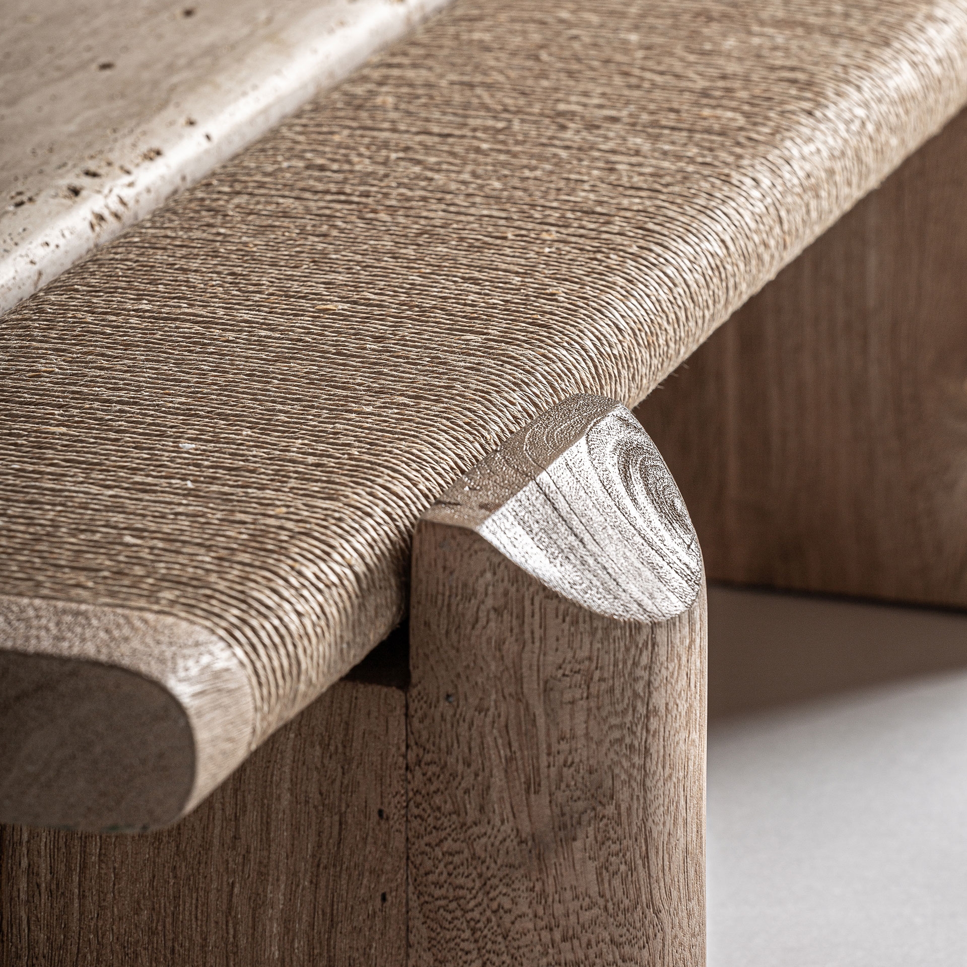 Mesa de centro jacquard de estilo contemporáneo. Fabricado en madera de mango en color marrón combinado con mármol en color marrón. Producto desmontable.