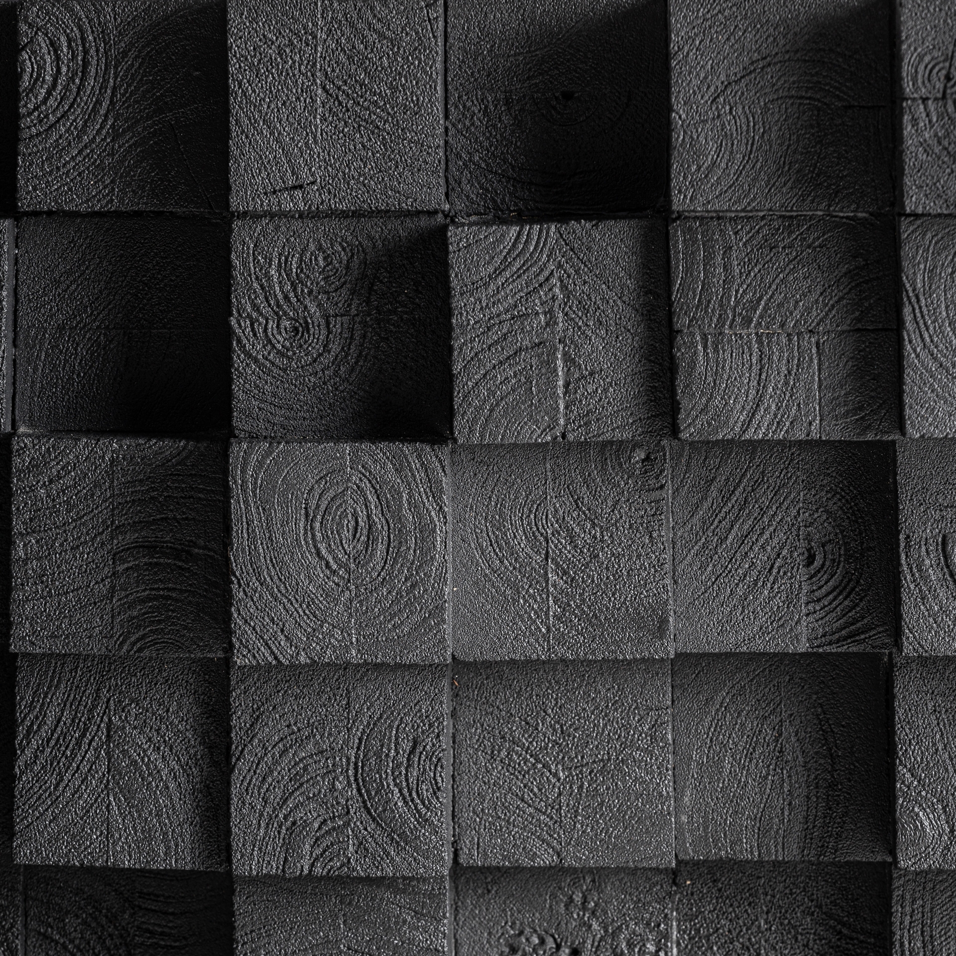 Mesa de centro Pètria de estilo contemporáneo fabricado en madera de mango en color negro con acabado arenado combinado con vidrio en color negro con acabado templado.
