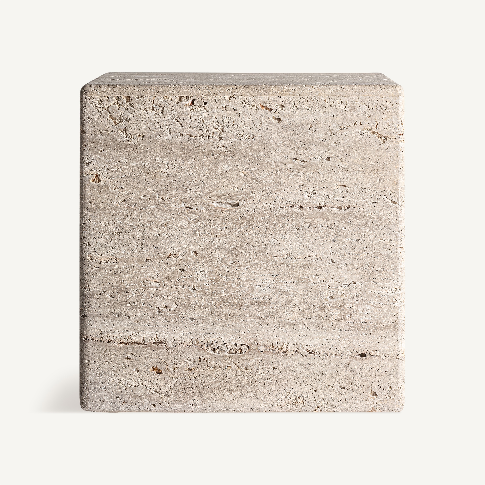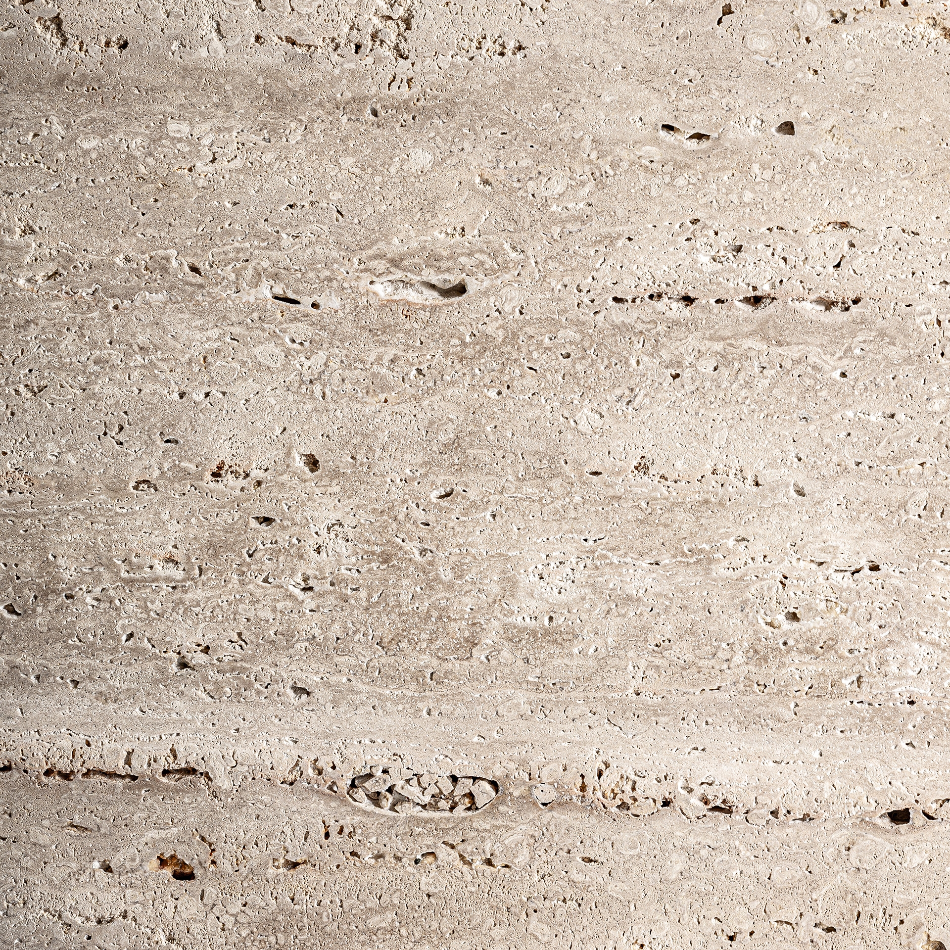 Mesa de centro Rapolano de estilo art deco fabricado en travertino en color beige.