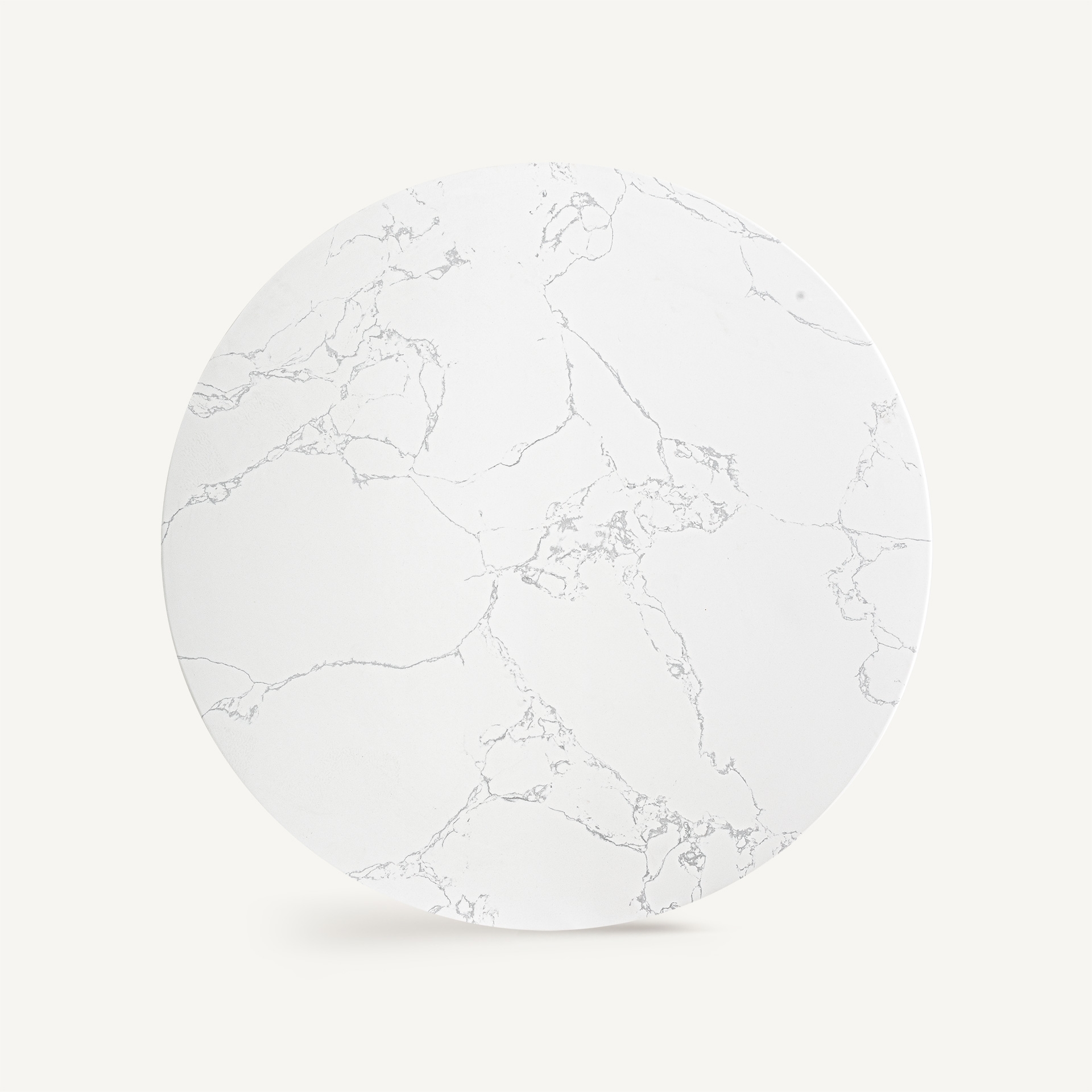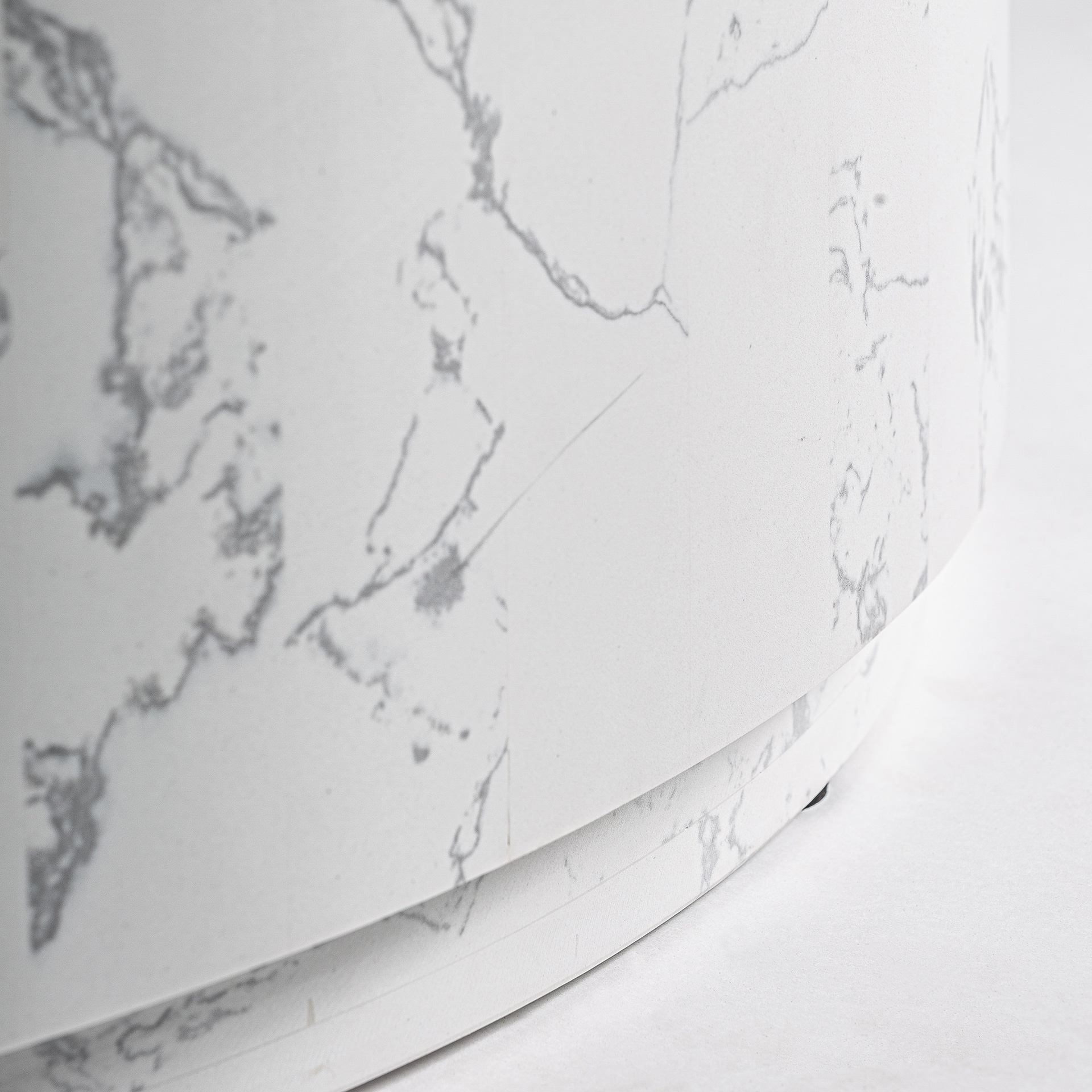 Mesa de centro Vonnas de estilo art deco fabricado en piedra sinterizada en color blanco.