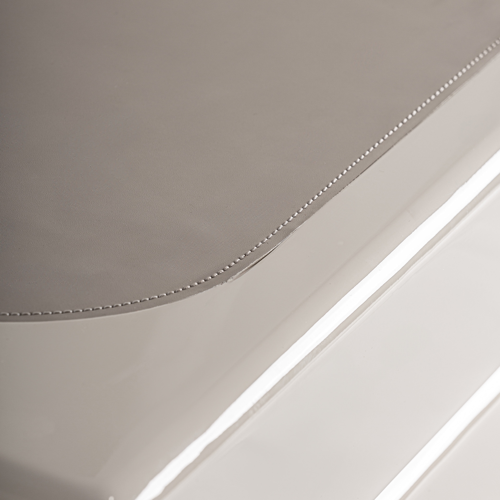 Mesa de centro Whiel de estilo contemporáneo fabricado en madera dm en color crema combinado con poliuretano en color beige en color marrón.