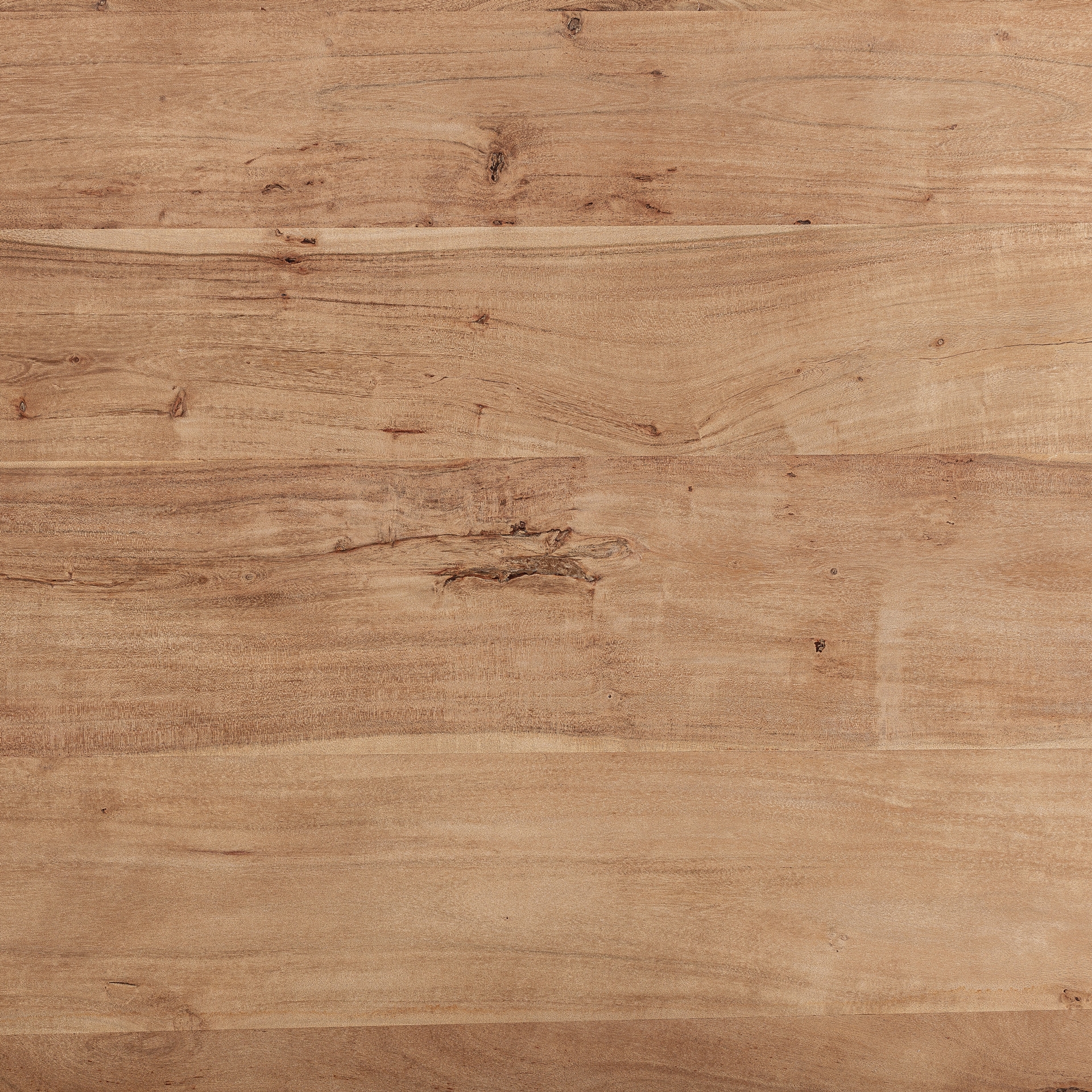 Mesa comedor Knaith de estilo contemporáneo fabricado en madera de acacia en color marrón claro con acabado natural combinado con madera de mango en color negro. Producto desmontable.