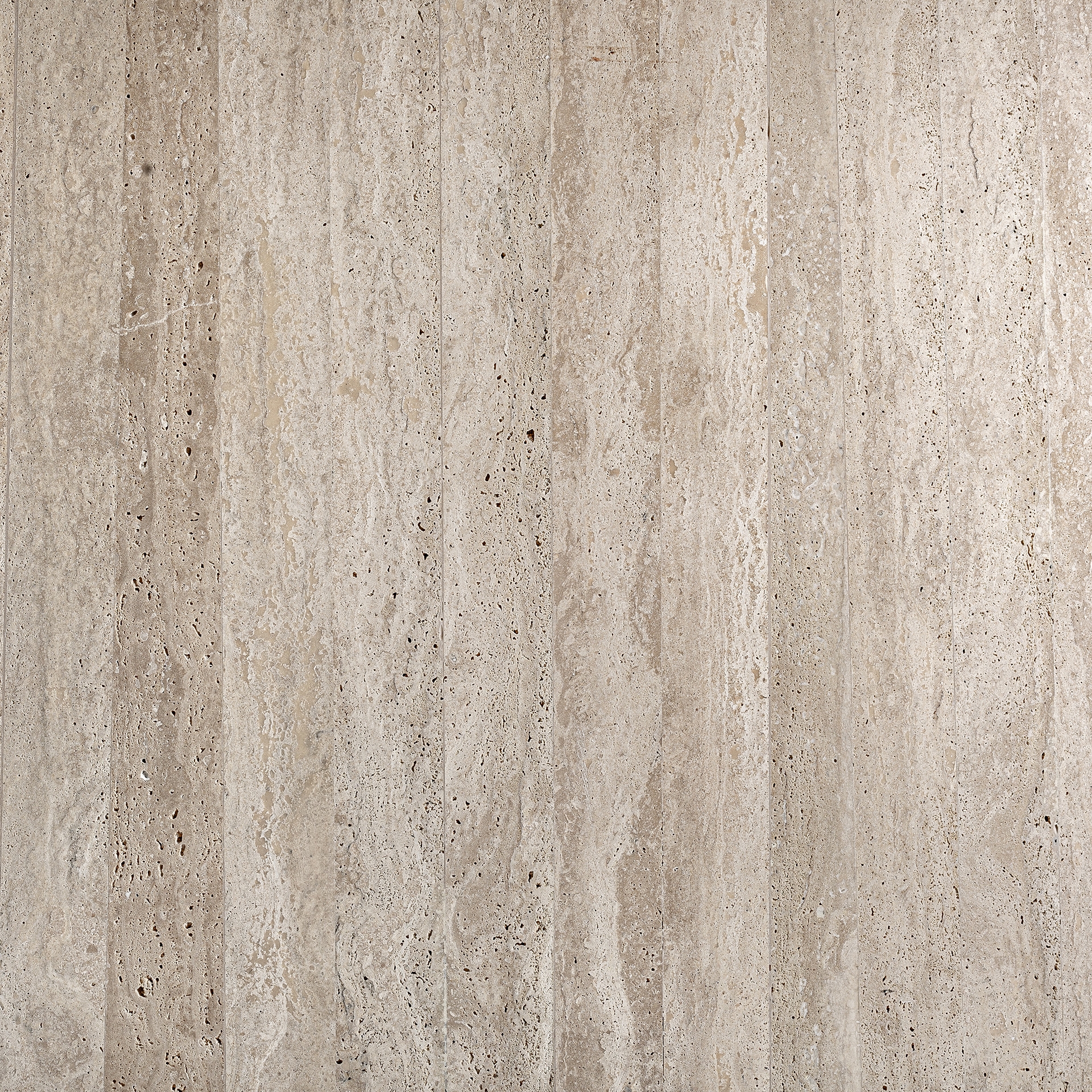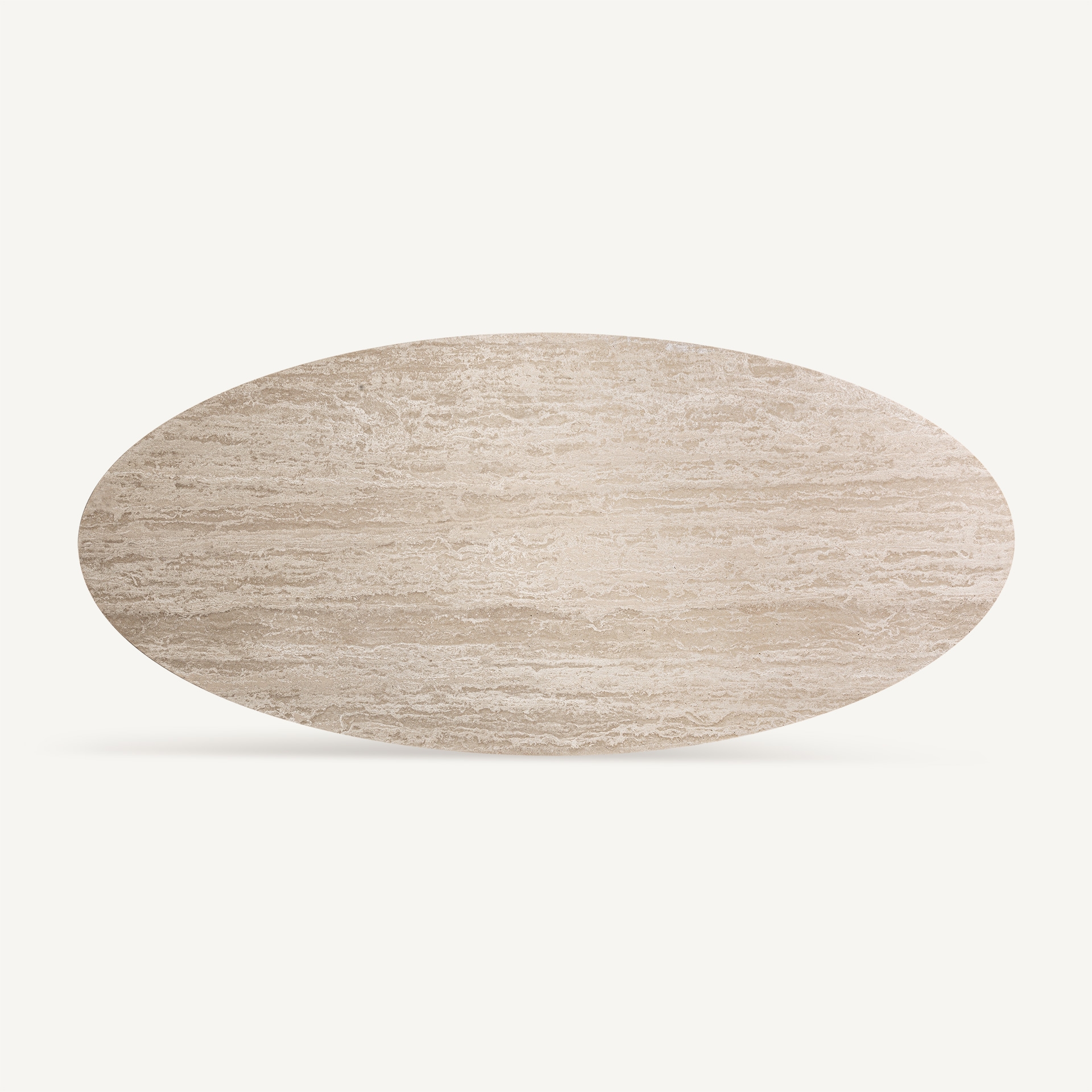 Mesa comedor Thiennes de estilo art deco fabricado en travertino en color marrón claro. Producto desmontable.