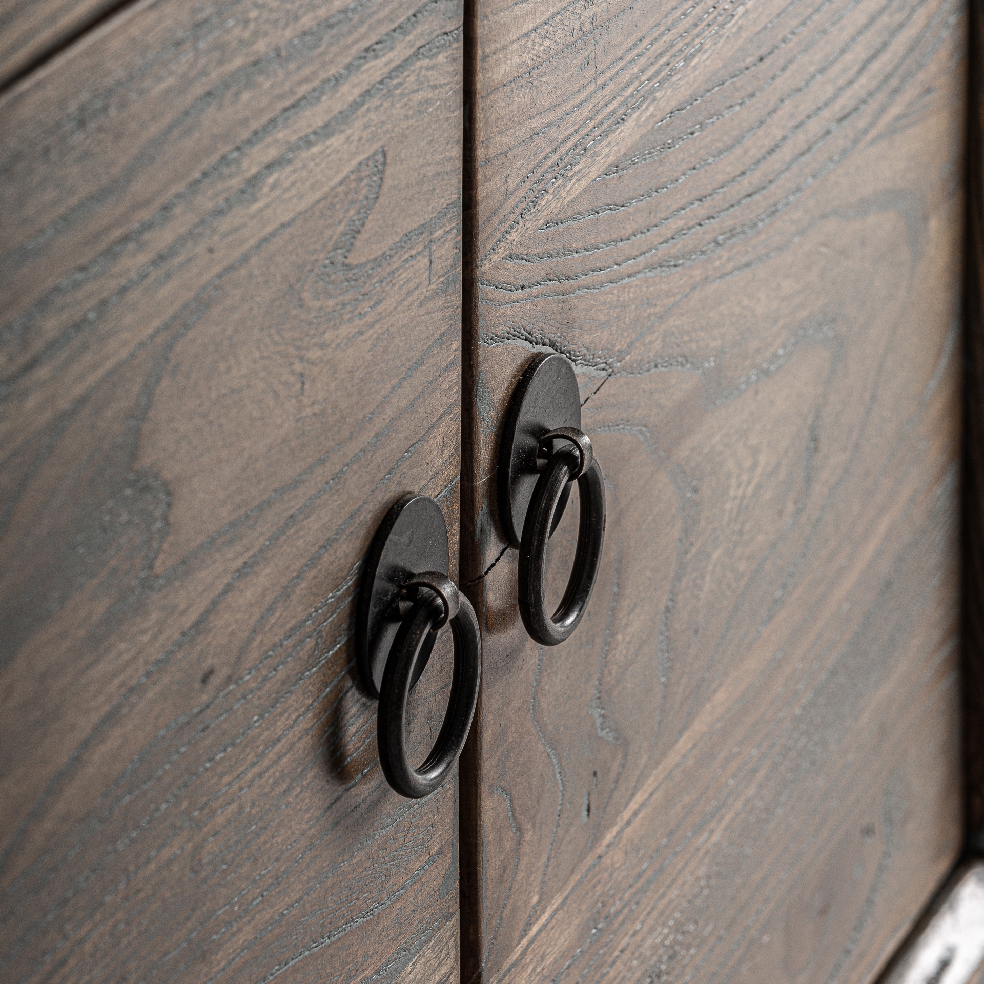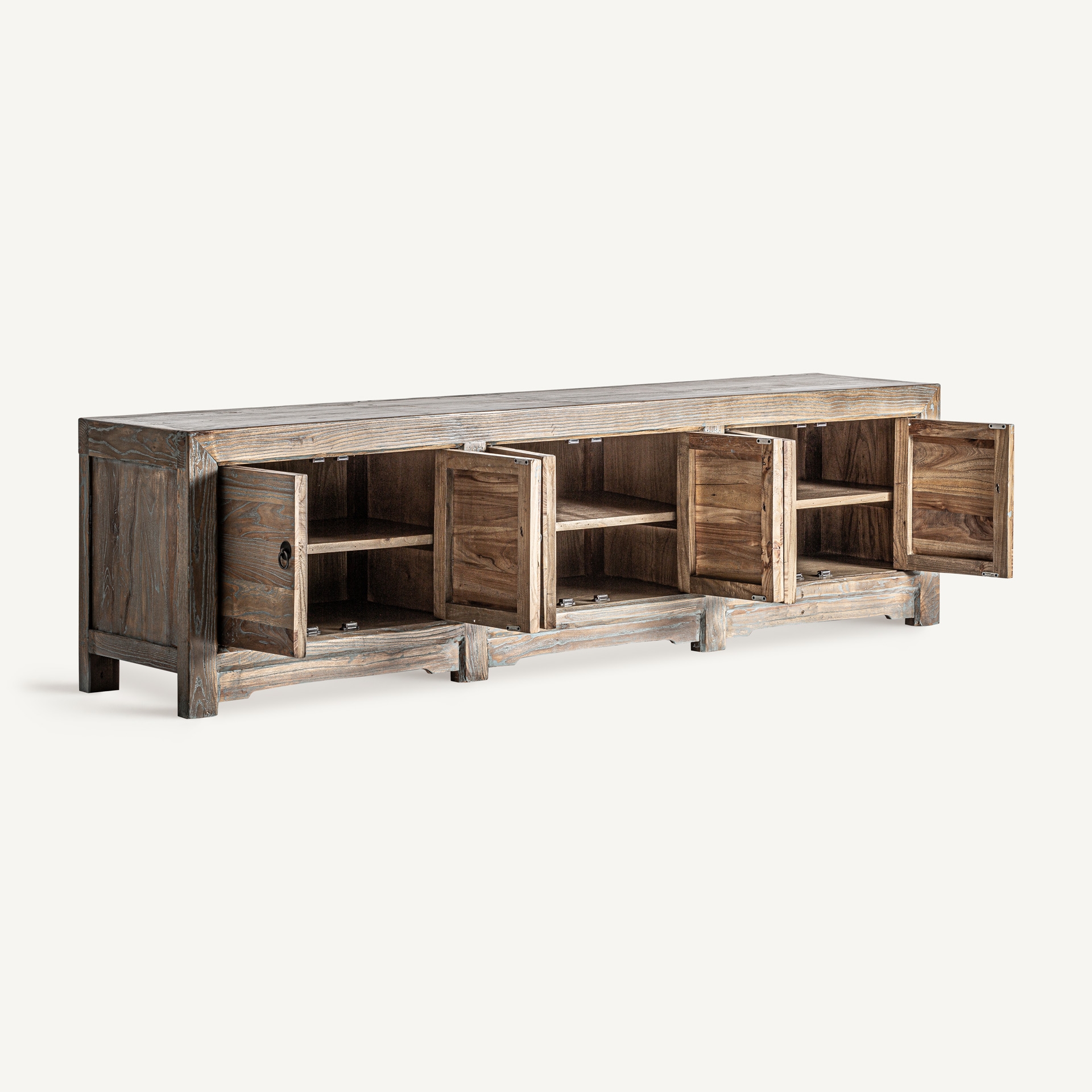 Mueble tv Untza de estilo rústico fabricado en madera de pino reciclado en color marrón.