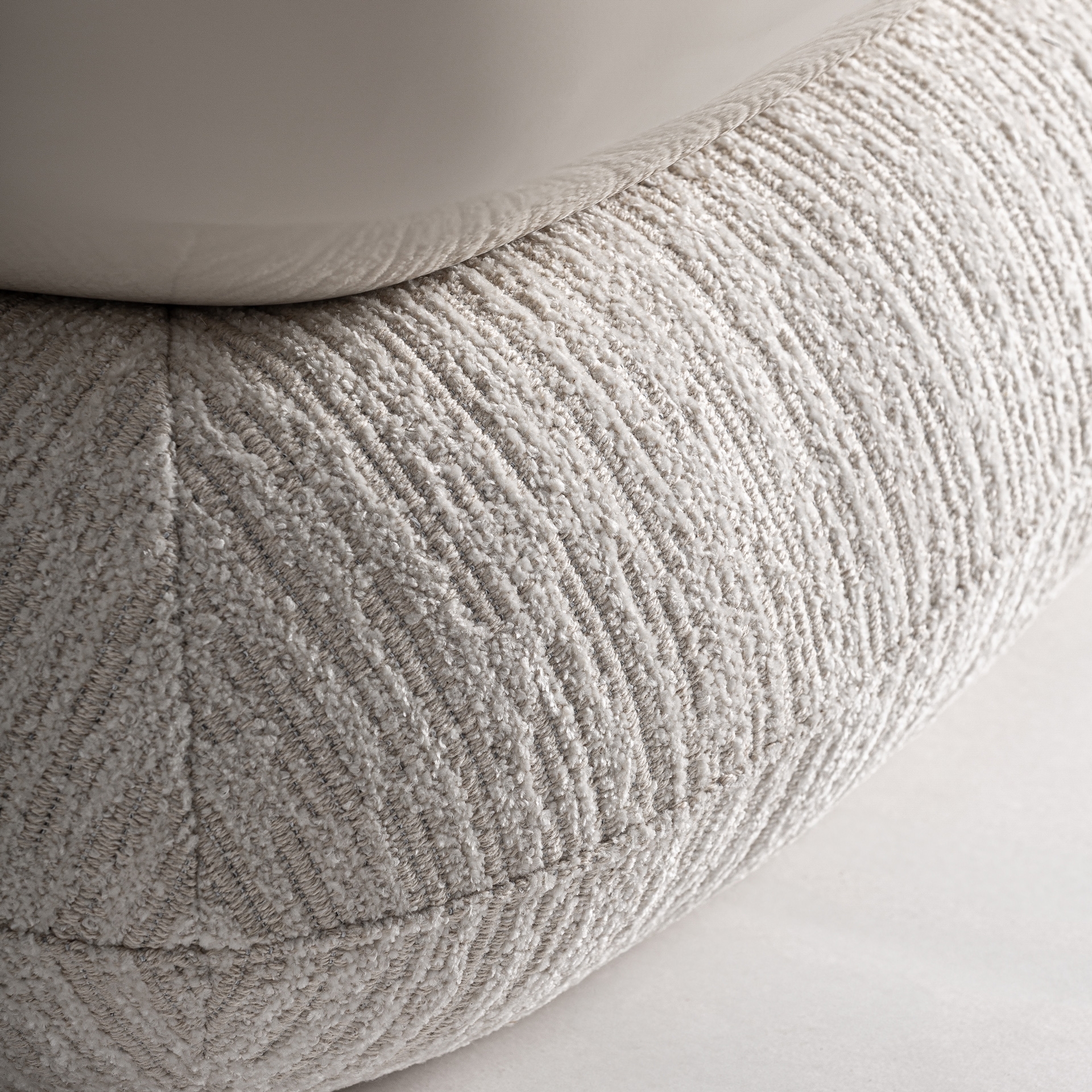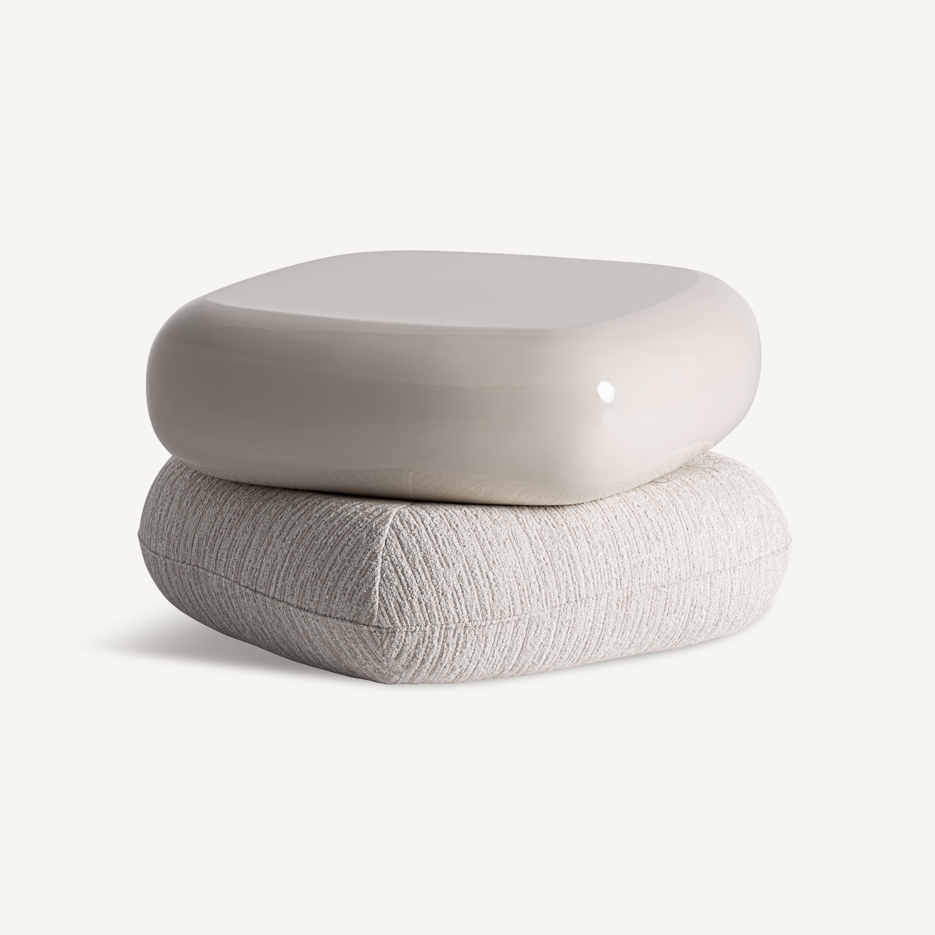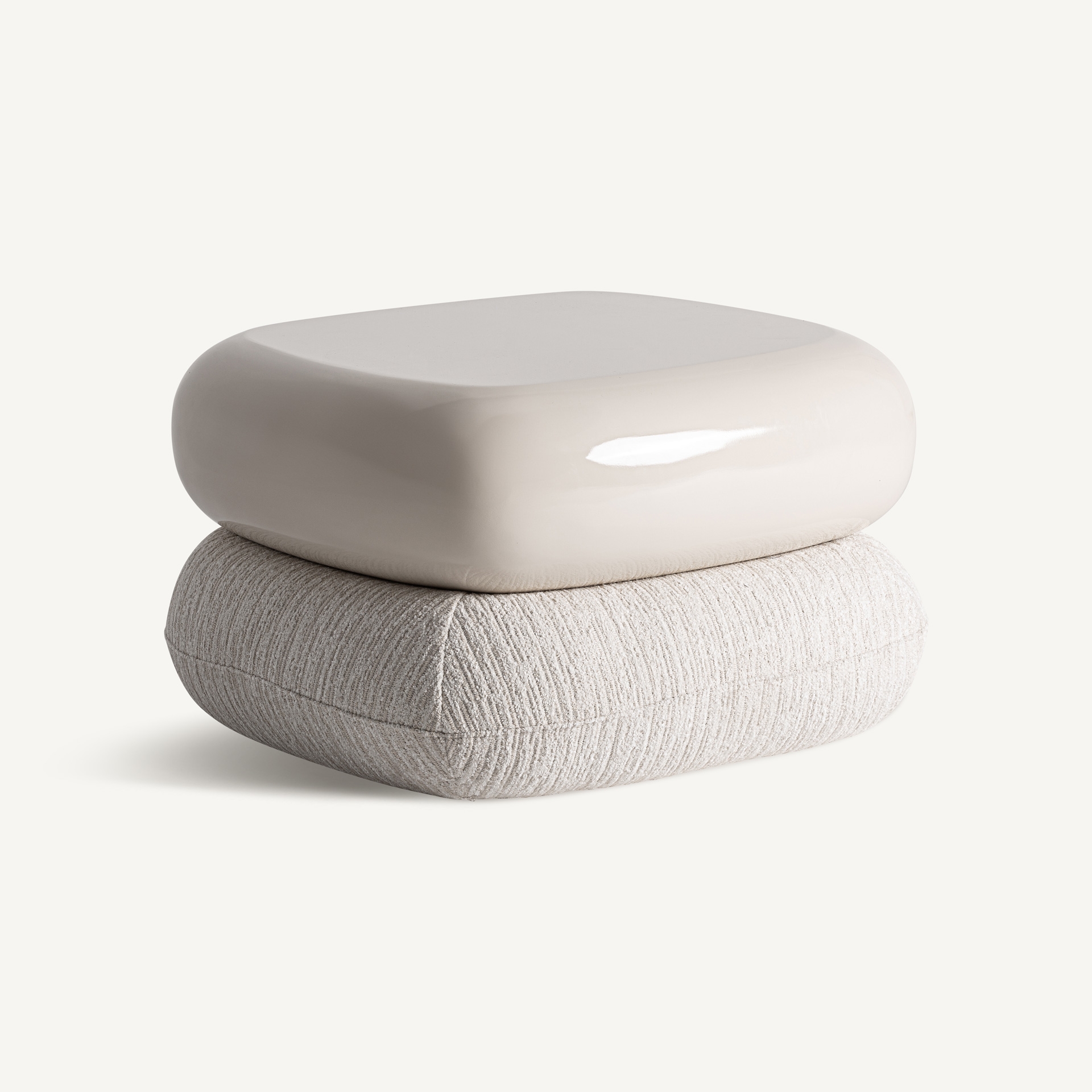 Reposapiés Wallau de estilo contemporáneo fabricado en madera dm en color beige combinado con poliéster en color beige y espuma.