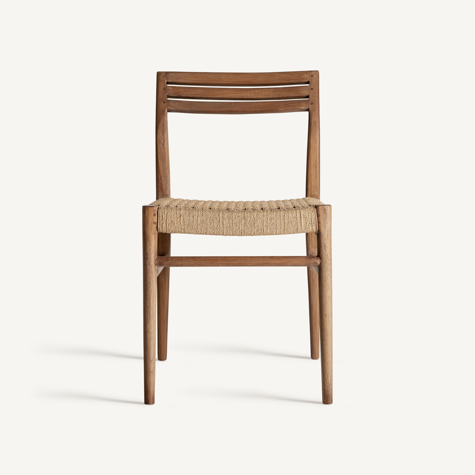Silla Souillac de estilo vintage fabricado en madera de teka en color marrón combinado con cuerda en color marrón claro.