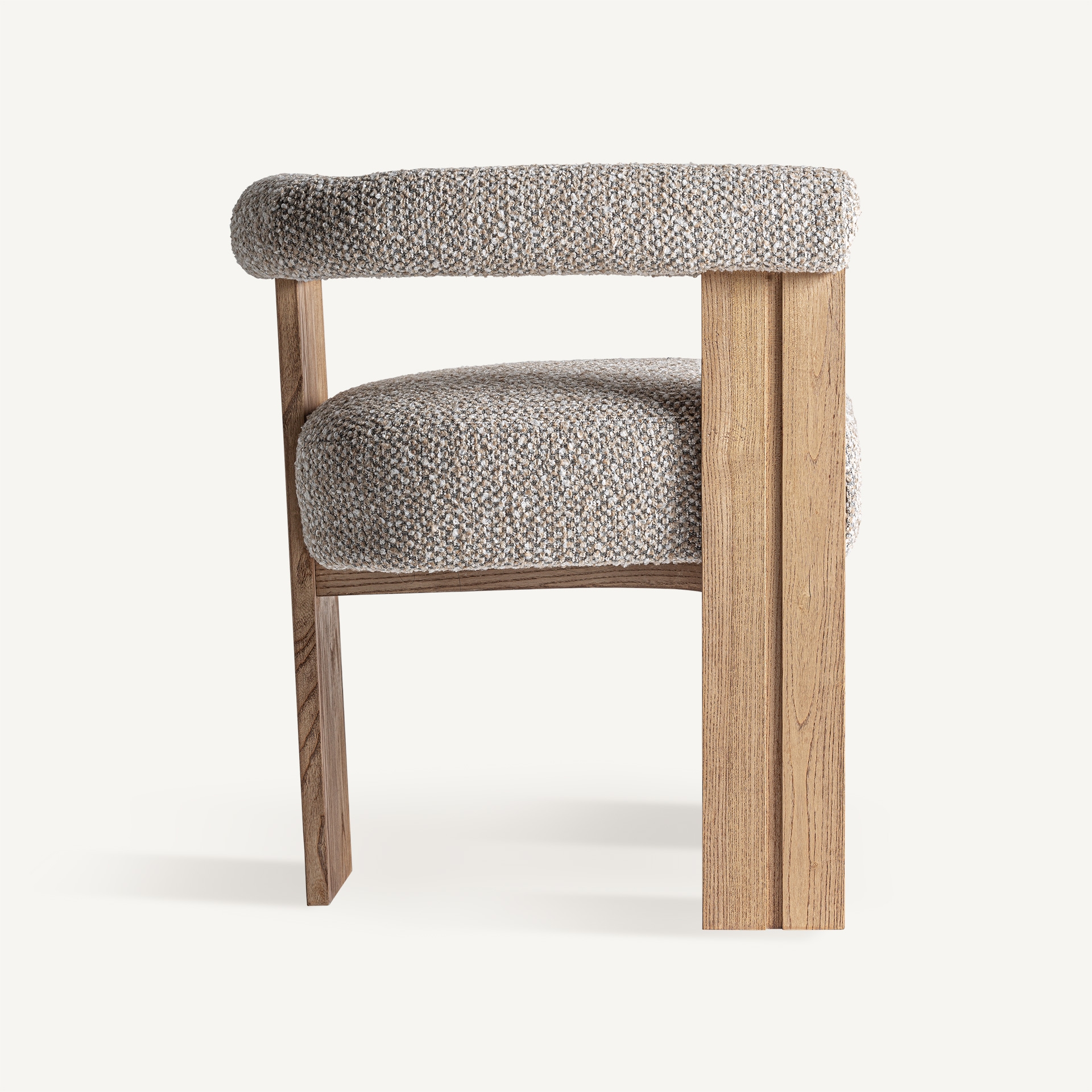 Silla Ustka de estilo contemporáneo fabricado en poliéster en color gris con acabado jaspeado combinado con madera roble en color marrón claro.