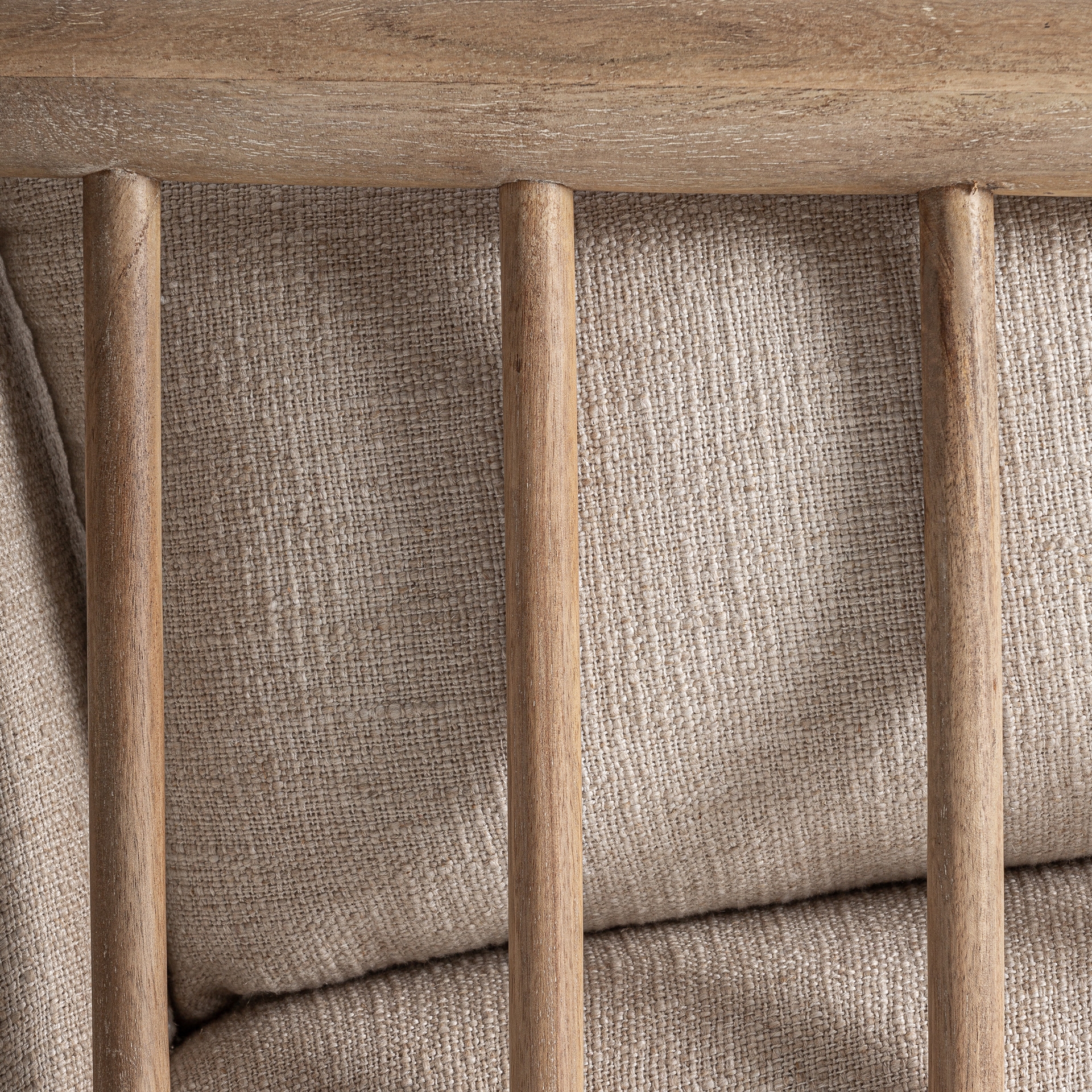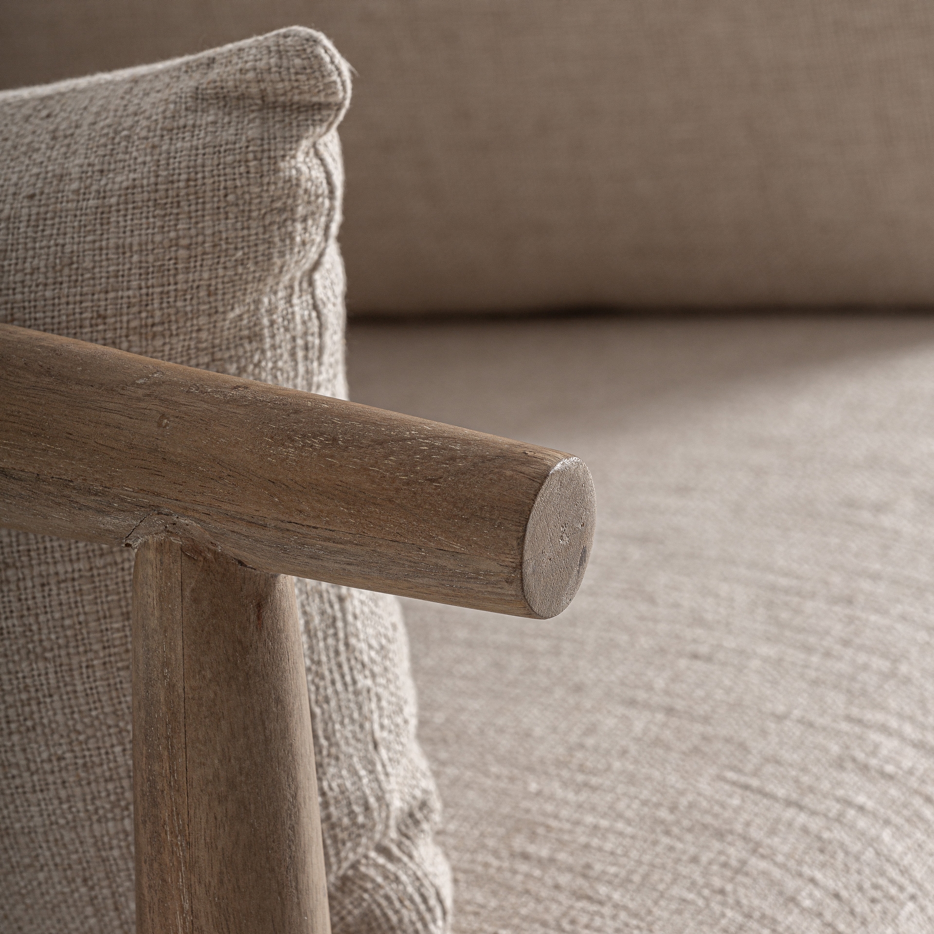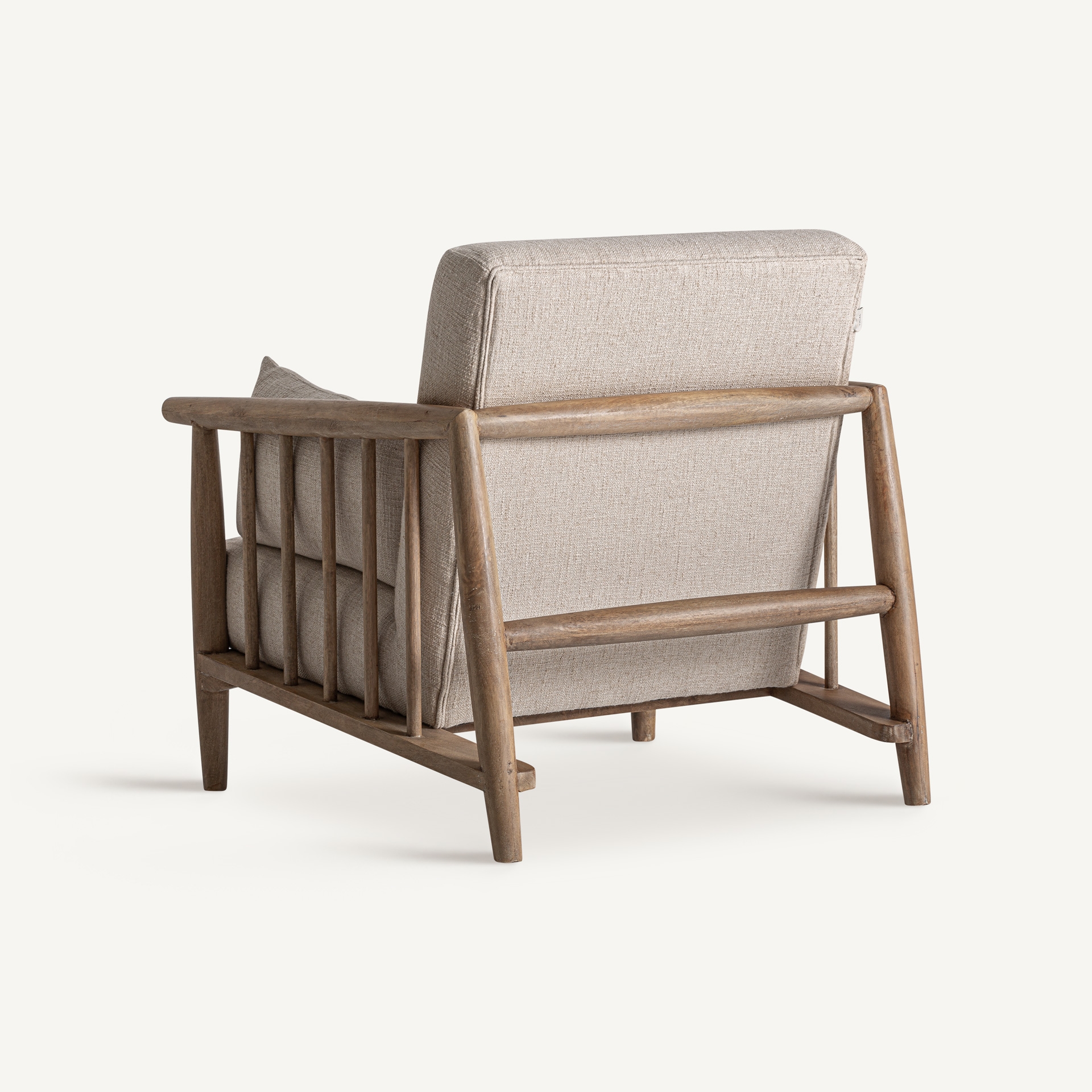 Sillón Grebin de estilo contemporáneo fabricado en madera abedul en color marrón combinado con algodón en color beige. Producto desenfundable.