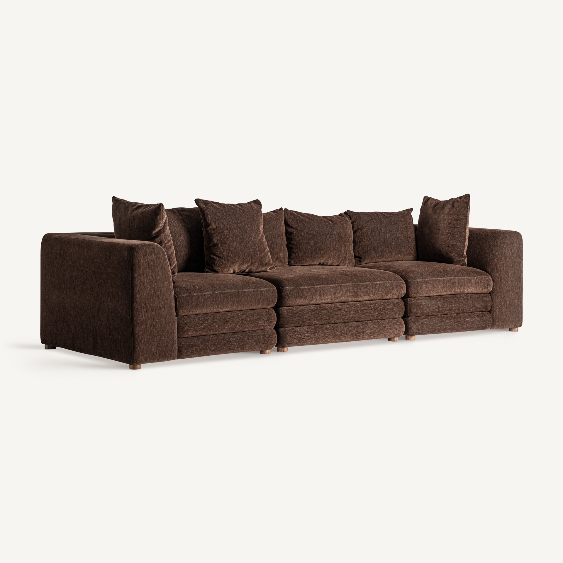 Módulo sofá esquinero Alfter de estilo contemporáneo fabricado en poliéster en color marrón combinado con espuma y madera de caucho en color negro. Producto desenfundable. Compatible con: 37238.