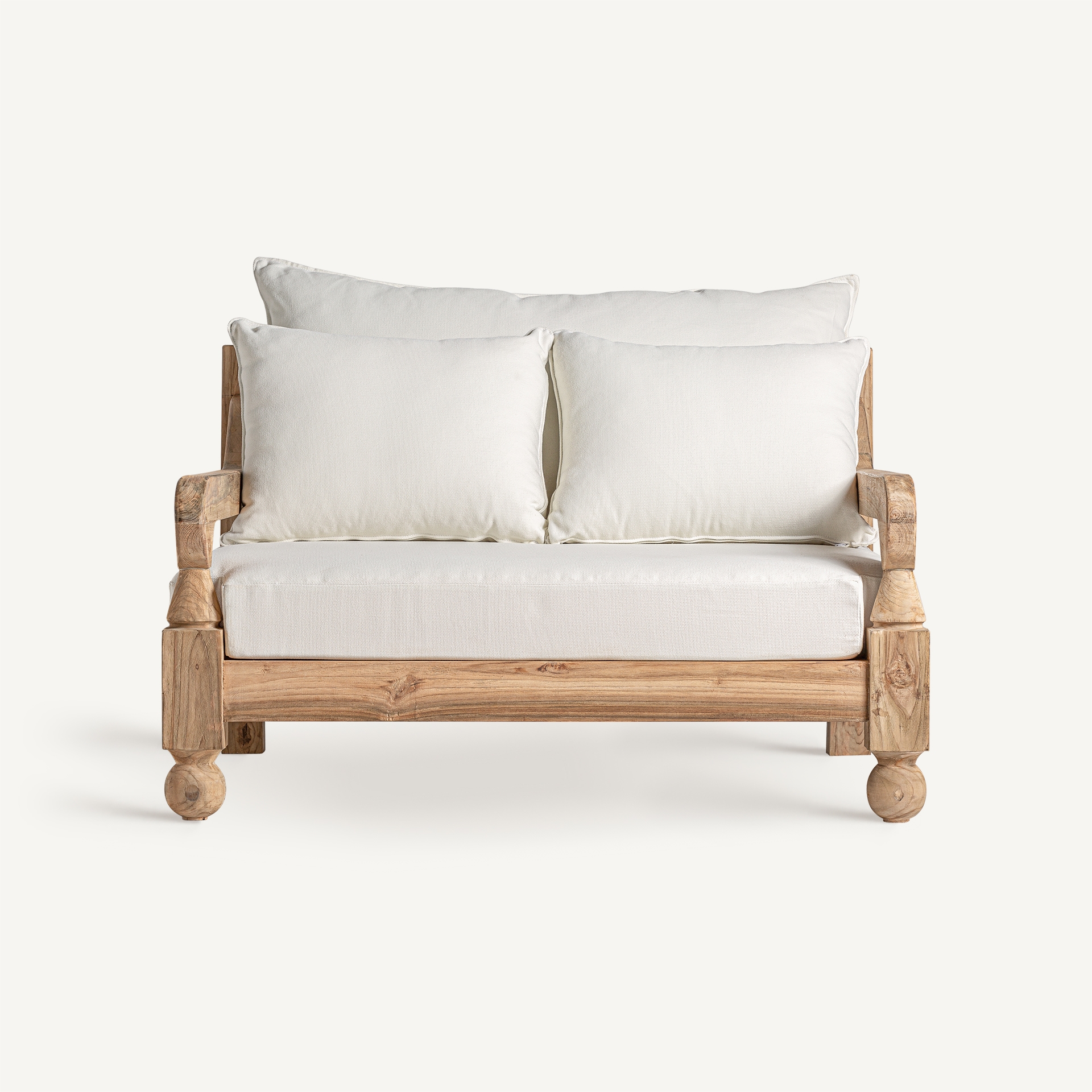 Sofá jodphur de estilo colonial fabricado en madera de teka reciclada en color marrón con acabado natural combinado con polipropileno reciclado en color blanco. Producto desmontable desenfundable. Compatible con: 34009 34178.