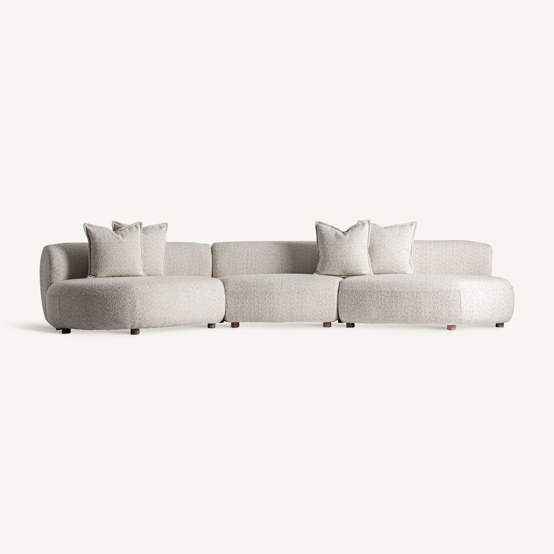 Sofá Wenden de estilo contemporáneo fabricado en poliéster en color blanco roto combinado con espuma y aluminio. Producto desmontable desenfundable.