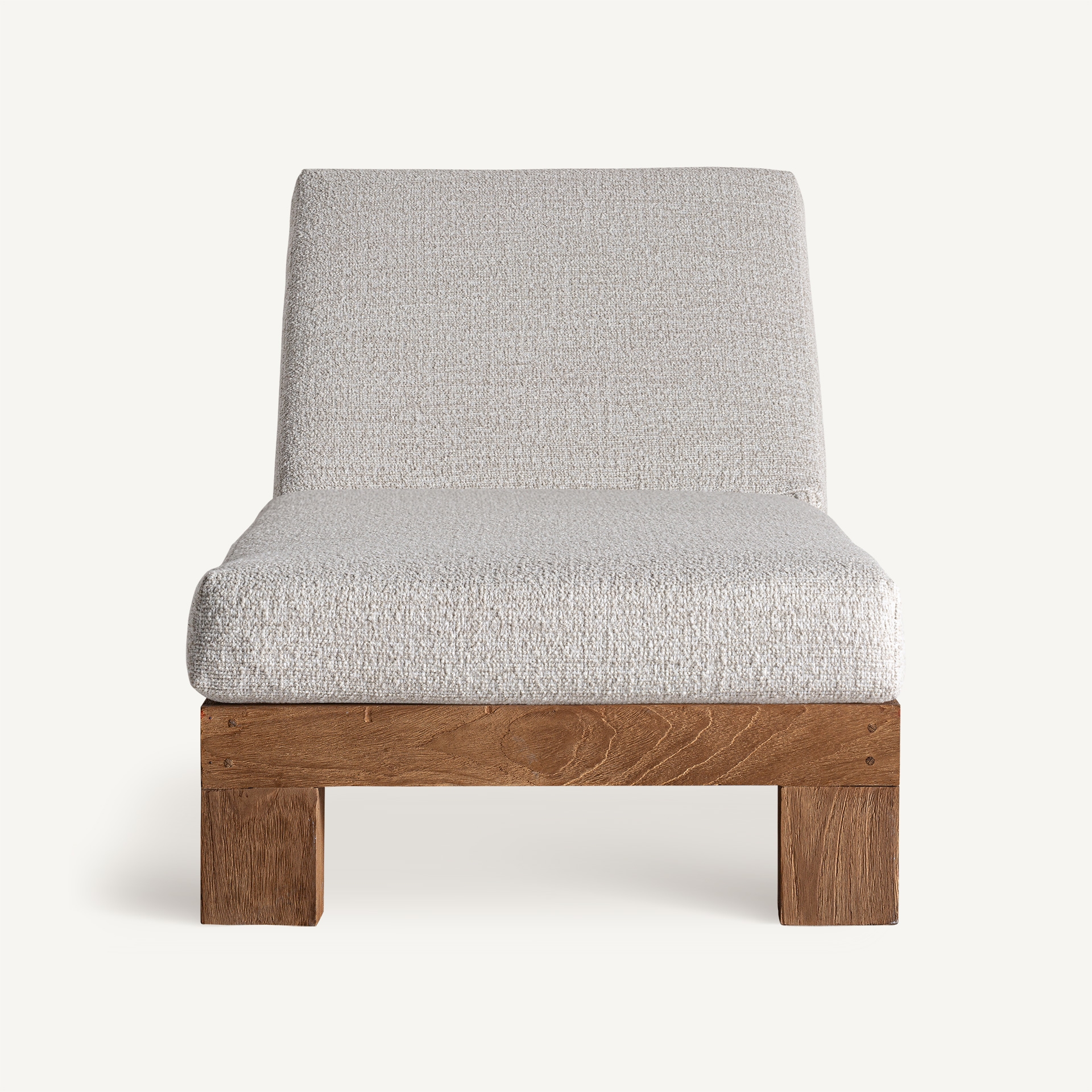 Tumbona Testa de estilo colonial fabricado en madera de teka en color marrón combinado con polipropileno en color blanco roto.