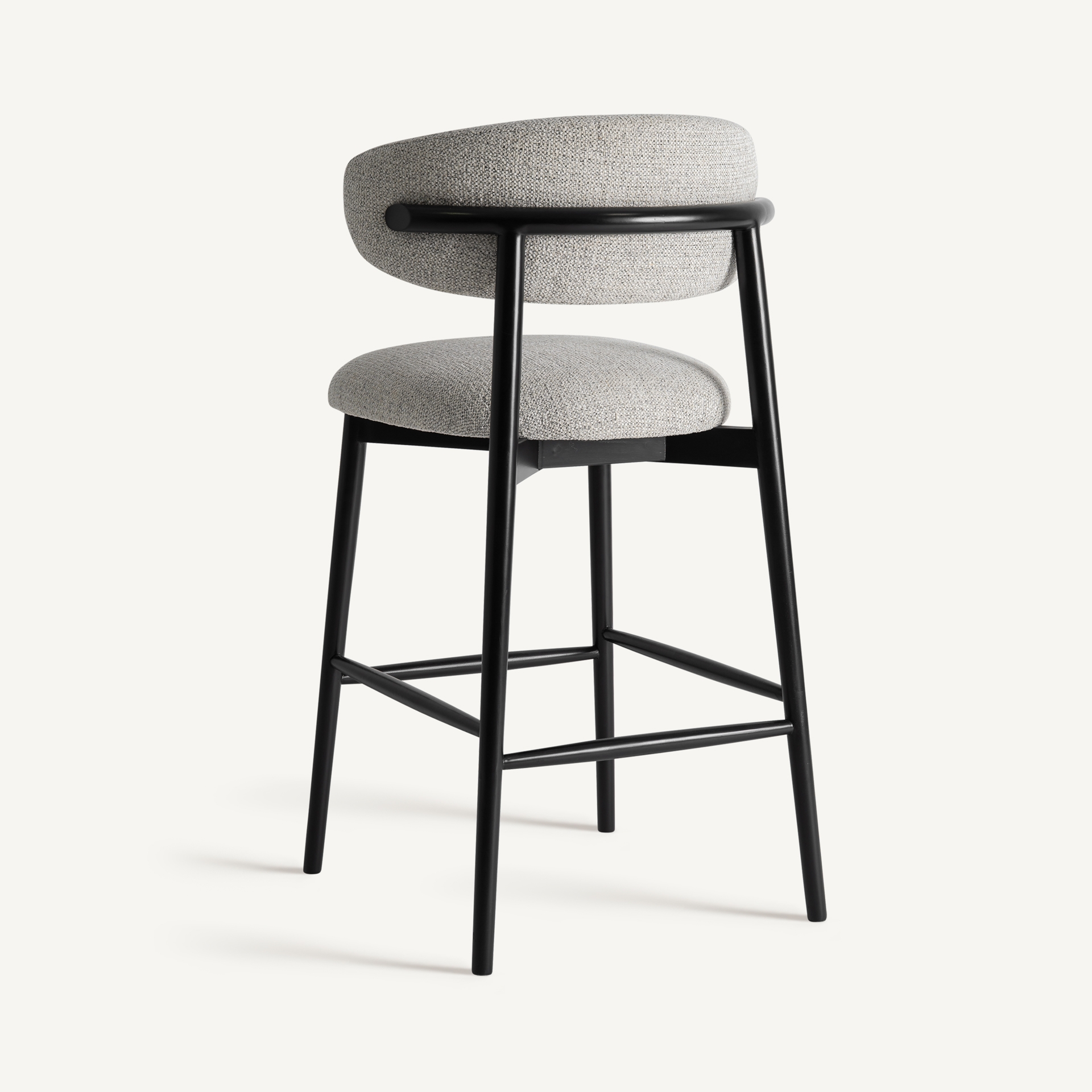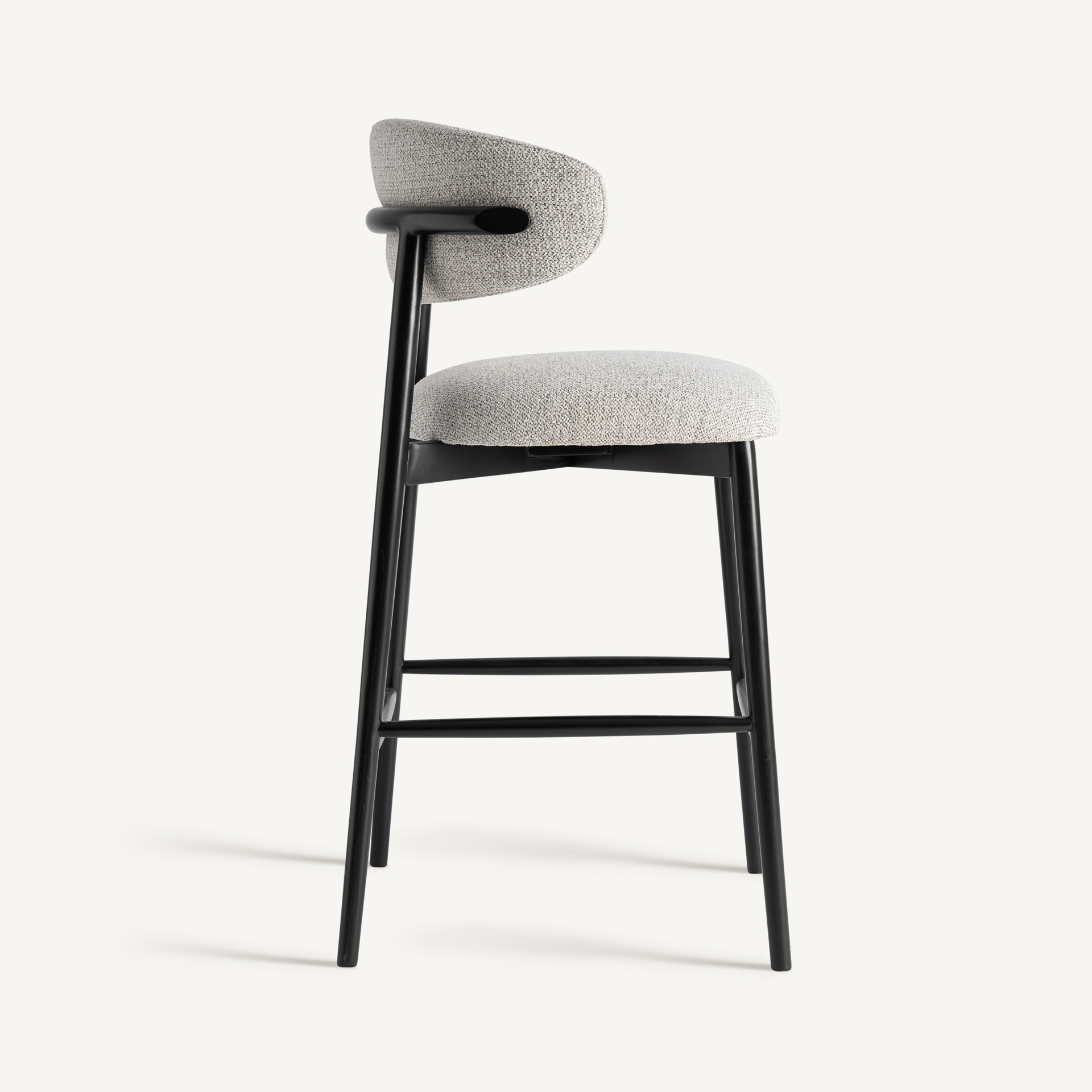 Taburete Glades de estilo contemporáneo fabricado en madera de fresno en color negro combinado con poliéster en color beige.